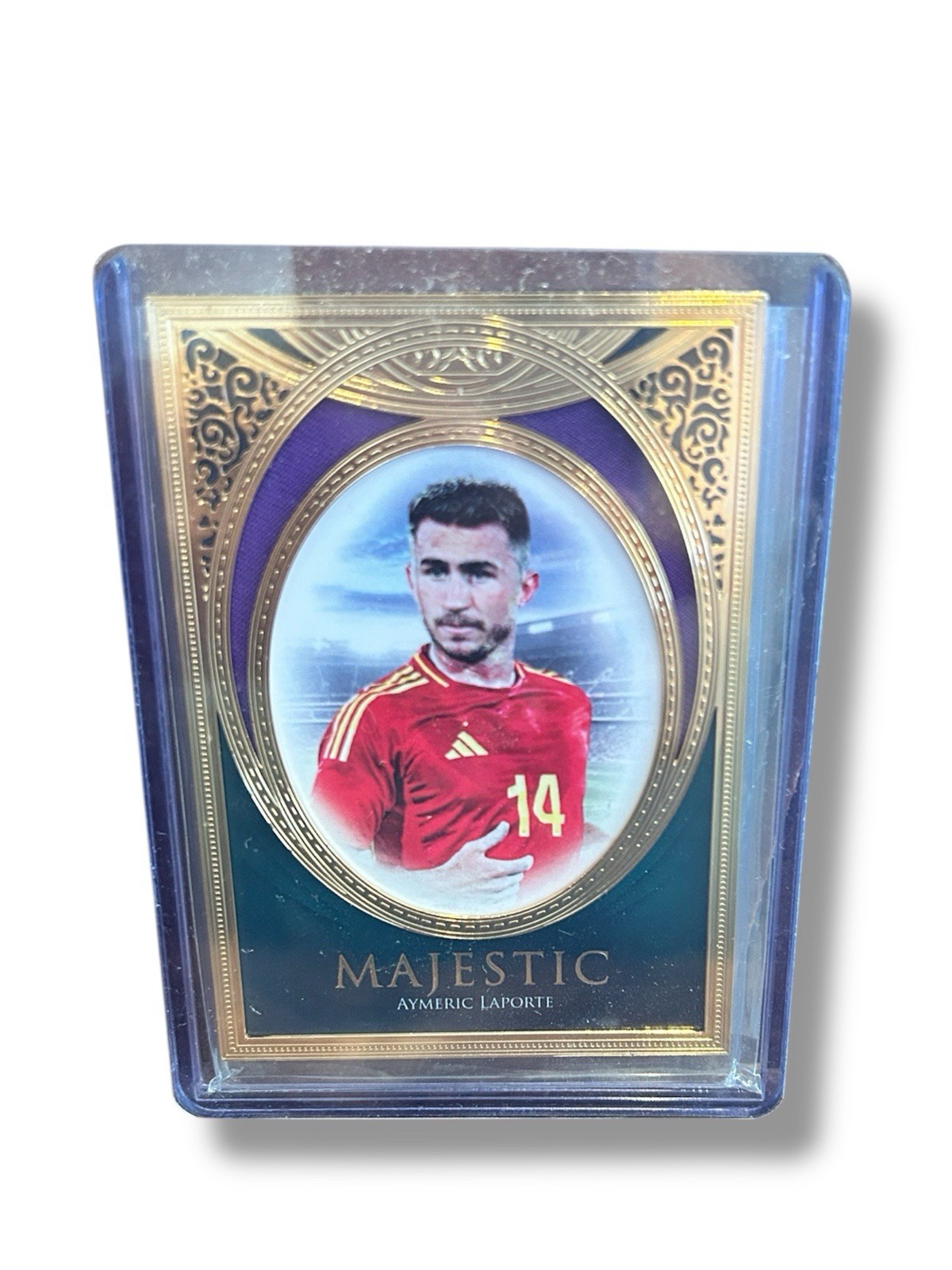 The Futera Majestic Gold Plated Aymeric Laporte Match Worn Card 2024 Limited is a highly sought-after sports trading card featuring the talented defender from Manchester City. This original card from the 2024 Futera Unique set is framed and serial numbered, making it a valuable collector's item. With its exclusive gold parallel variety and match-worn design, this card is a must-have for football fans and collectors alike. The card is in near mint or better condition, perfect for any football enthusiast looking to add a unique piece to their collection.