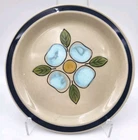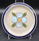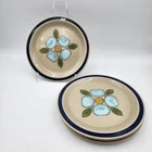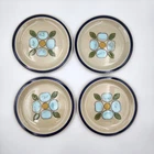 These vintage hand painted Futura Stone Snowflake plates are the perfect table setting for a vintage mid-century decor. Made in Japan, each plate in the set of 4 measures 11" diameter. These stoneware plates are dishwasher and microwave safe. The design is of an ice blue flower with a yellow center and framed by green leaves.