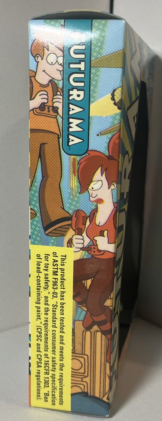 The product is a 2008 Toynami bendable and poseable action figure of Professor Farnsworth from the animated TV show "Futurama." Made of PVC and paperboard materials, this original reproduction features the iconic character in a collectible form, perfect for fans of the Futurama franchise.