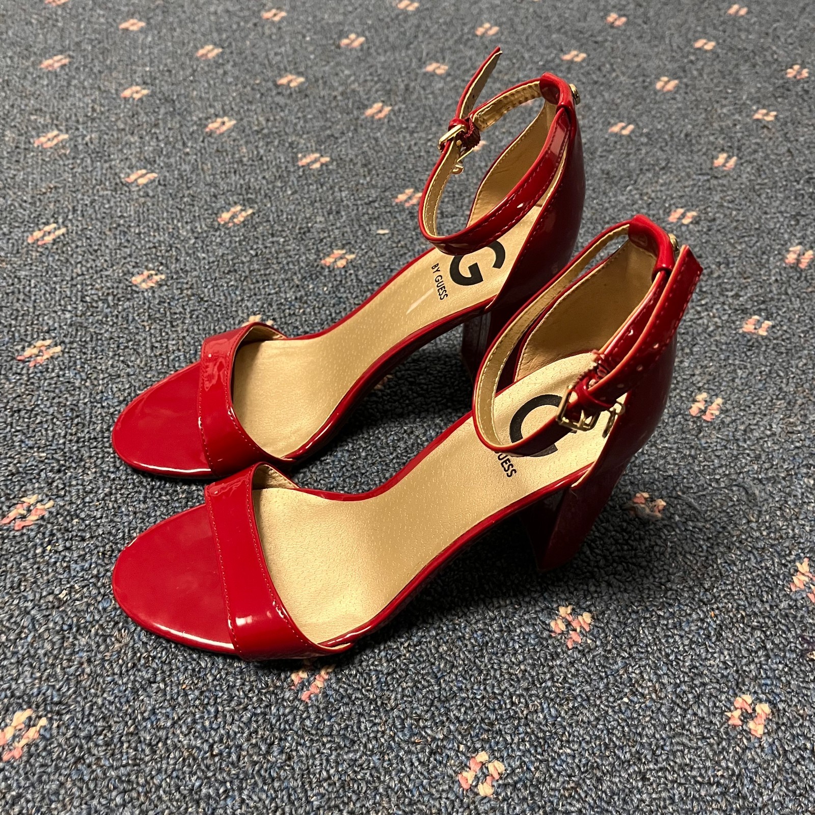 These G by Guess Women's Chunky Heel Pumps in size 7.5M are a stylish and sexy choice for various occasions, including weddings, parties, casual outings, and even formal events. The bold red color and open toe design with a buckle closure give off a confident and trendy vibe. The block heel adds both fashion and comfort, while the ankle strap adds a touch of elegance. Made from man-made materials, these pumps are perfect for any season and are sure to make a statement in any outfit.