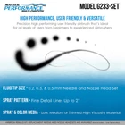 TCP Global Ebay Storefront Ordering | Shipping | Returns | International Product Information Part# MAS G233-SET G233 Airbrush Pro Set with 3 Nozzle Sets (0.2, 0.3 & 0.5mm Needles, Fluid Tips & Air Caps) - Dual-Action Gravity Feed with 1/3oz Cup & Cutaway Handle Professional Master Performance Multi-Purpose Model G233 Pro Set Master Airbrush. The Pro Set is a Model G23 precision dual-action gravity feed airbrush with 3 nozzle set sizes (0.2, 0.3 & 0.5 mm needles, fluid tips and air caps) and has a 1/3 oz. gravity fluid cup. The included 0.2, 0.3 and 0.5mm fluid tip set-ups allow this extremely versatile airbrush to be used for extra fine detail spray, overall spray or for 2" wide background spray. It's a great all-purpose airbrush kit for beginners and students, as well as for advanced artists since it works excellent for most airbrushing applications and also with most types of paint spray media. It's ideal for hobbies, crafts, auto graphics, temporary tattoos, cake decorating, fine art, nail art and more! The airbrushes cutaway handle allows you to quickly flush and clean air passages and the fluid control knob provides easy trigger adjustment and control of paint flow. Set also includes an airbrush quick disconnect coupler and plug that includes a built-in air flow control valve. 100% Satisfaction Guarantee: Buy with confidence, if you're not satisfied with this airbrush at anytime within the first year of purchase, we'll provide a refund or replacement. Master Performance G233 Pro Set Master Airbrush with 3 Nozzle Sets (0.2, 0.3 & 0.5mm Needles, Fluid Tips and Air Caps) - Dual-Action Gravity Feed Airbrush with 1/3 oz Cup and Cutaway Handle Master Airbrush Model G233 Pro Set Airbrush with 3 Tip Sizes The versatile G233 Pro Set includes a Model G23 Master Airbrush Precision Dual-Action Gravity Feed Airbrush that includes all 3 nozzle set sizes (0.2, 0.3 & 0.5 mm needles, fluid tips and air caps) and has a 1/3 oz. gravity fluid cup. Airbrush features a cutaway handle that allows you to grab the needle chucking nut to quickly flush and clean the needle passage ways. The fluid control knob provides easy trigger adjustment and control of paint flow. A high performance internal mix airbrush with a dual-action (air & fluid control) trigger. The Pro Set also includes an airbrush quick disconnect coupler and plug that includes a built-in air flow control valve. Set comes in a molded plastic storage case with an instruction guide and nozzle wrench. User Friendly and Versatile Airbrush The included 0.2, 0.3 and 0.5mm tips set-ups allow this extremely versatile airbrush to be used for extra fine detail spray, overall spray or for 2" wide background spray. It's a great all-purpose airbrush kit for beginners and students, as well as for advanced artists since it works excellent for most airbrushing applications and also with most types of paint spray media. It's ideal for hobbies, crafts, auto graphics, temporary tattoos, cake decorating, fine art, nail art and more! Key Airbrush Features and Benefits The Model G23 Airbrush is made with high quality precision components that enable it to work efficiently while providing exceptional atomization and accurate spray control. The solvent resistant PTFE needle packing prolongs the airbrushes life. It enables you to use of solvent based automotive paints: urethane's, lacquers and enamels. Removing the needle & nozzle caps enable you to spray the full range of texture & stippling effects. Rebuild kits and replacement needle/nozzle sets are available for this airbrush. View all categories Warehouse Locations Las Vegas, Nevada South Carolina