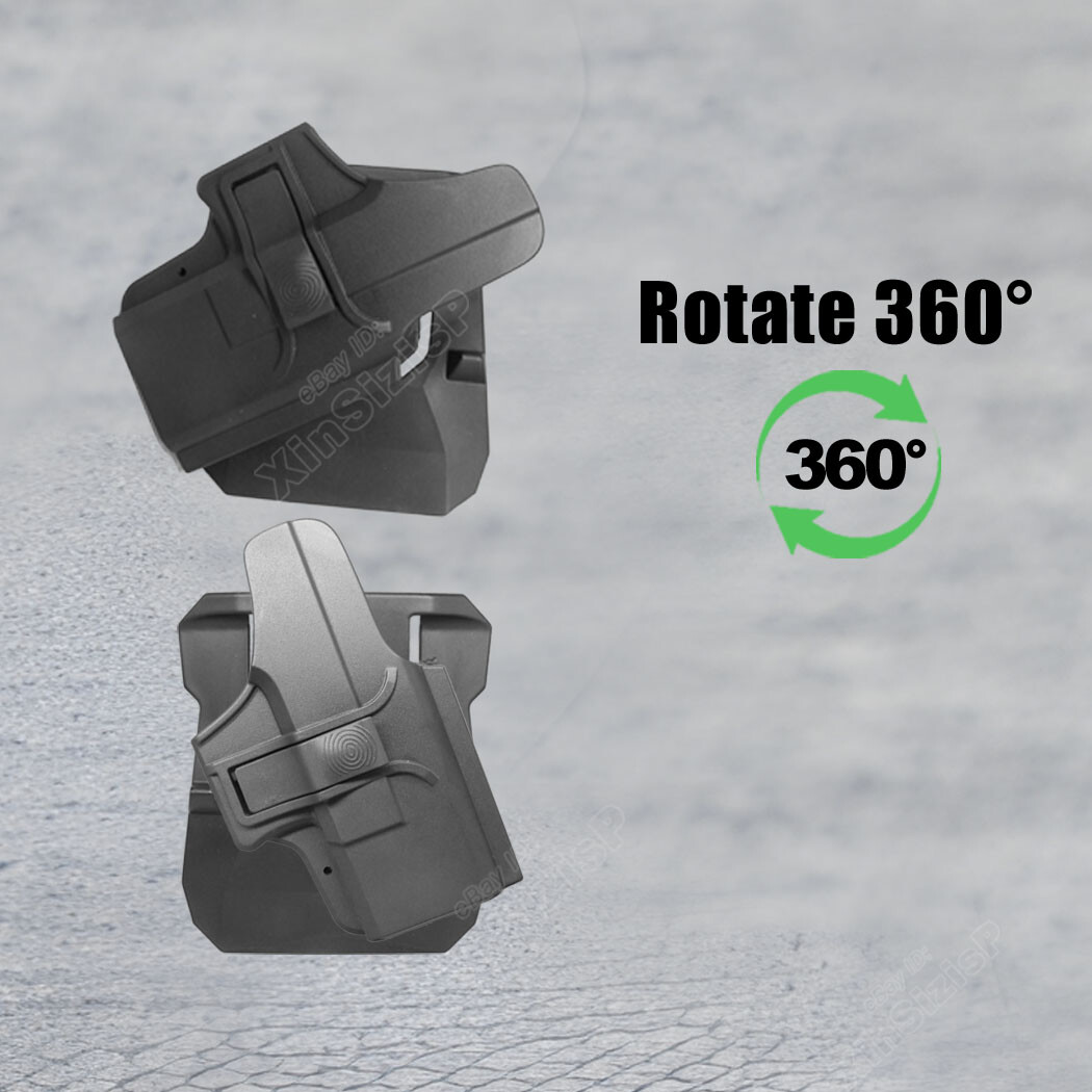 High Quality Military & Police Grade Polymer OWB Holster Specially Designed For Fast Draw During Duty Or Shooting Competition. Outside Waistband Tactical H olster fit: Holster fit Glock 26 (Gen 3-5) 9mm Luger Glock 27 (Gen 3-5) .40 S&W Glock 33 (Gen 3-4) .357 SIG ( I t perfect fit the gun with Optic Mount Mini Sight a bove on the end of the barrel , B ut without laser and no embedded chassis, and no flashlight style ) For Glock gen5: You can use this holster directly without the block and axis pin in the hole; For Glock gen1-4: Assemble the block and axis pin into the hole of the holster, before using the holster . Ease and Comfort Push side buttons to achieve the fast opening and closing, unique design allows for belt carrying or vest carrying, perfectly used by duty holsters, uniformed law enforcement officers, security personnel, military personnel, private persons, and shooting sports holsters. And it fits closer to the body which can achieve better concealment under clothes. High S afety Secure Level II Retention - Auto-locking system restrain pistol in the holster to ensure ultimate safety, activate the release by pressing the button with the index finger to achieve gun access . A djustable Easily set Holster 360 degrees to your desire position with Allen key, compatible belt width up to 2 inch . Tough & Durable Material Custom-molded body made of polymer stronger than leather that will wear out, adapt to every bad environment In the Package: · 1*Holster with Paddle Attachment · 1*Allen Key Shipping: Ships same day or next except Sundays and Holidays ! Free shipping! Ship by USPS First Class Package. 100% MONEY BACK GUARANTEE. Any question please be free to contact with us .Thanks!