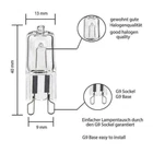 Description Description&Preview shipping&policy Description: Product Description: 1. Product name: halogen lamp beads G9 220V 2. Lamp holder model: G9. 3. Wattage: 40w 4. Product color: transparent 5. The outer diameter of the glass bulb: 13 (mm) 6. The voltage is 110-130, 220-240V 7. Power: 20-75W 8. Life: 1500-2000H Preview: Thank you for your purchase Problems? You can follow below process to chontact us. There is a time zone difference,but we will do our best to quickly response to your questions: Shipping ● We will arrange shipping for you within 24 Hours after payment cleared except the holidays. ● We always send the item to the address you give us on PAYPAL to ensure the security of the item. If you have changed your address, or want us to ship to another address, please change to the new address when you pay us with PAYPAL, otherwise we will not be responsible if the package is lost. Payments We accepts Paypal only If you have any questions about the payment,please contact us through eBay message. Import Duties In case some duty is due Upon delivery, it is your responsibility to meet that expense and this may cause delays to delivery schedule and you may have to pickup goods at the customs office. Terms & Conditions By bidding on this item,the Buyer agrees to all of the terms and conditions as outlined in this listing .please ensure to read and agree to All eBay terms and Conditions before bidding. All pictures are for illustration purpose only and Colours may vary slightly. Our store obeys all eBay Rules and Policies. Returns Policy To Return an item you must contact us and take photos of your item to clearly show any damage or unusual aspects of it. Approved returns will be subject to inspection on arrival. Items must be returned in original condition with all original packaging. All shipping and handing charges are non-refundable Return delivery costs are the responsibility of the buyer. We will cover the cost if sending replacement/repaired items. Within 7 days after receiving your products, we offers a no-hassle 7 day exchange/replace only if your items are found to be defective by manufacturer.