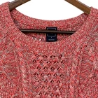 Cozy and stylish sweater, perfect for adding a touch of warmth and texture to your wardrobe. This cable knit sweater features a beautiful blend of coral, orange, and red tones, creating a visually appealing heathered effect. The intricate cable knit design adds depth and dimension, while the open knit detailing at the center front provides a subtle peek-a-boo element. Raglan sleeves provide a comfortable fit. The classic crew neck makes it easy to layer, and its versatile design allows you to pair it with jeans, skirts, or leggings for a variety of casual and stylish looks. Ideal for layering on cool autumn days, casual weekend outings, or cozy evenings by the fireplace. Style: Pullover Color: Red Department: Women Type: Sweater Material: 100% Cotton, Cotton Blend Sleeve Length: Long Sleeve Neckline: Crew Neck Features: Cable Knit, Open Knit, Heathered, Comfortable, Layering Pattern: Argyle/Diamond Sleeve Type: Raglan Sleeve Fabric Type: Knit Accents: Cable Knit Keywords: GAP sweater, cable knit sweater, coral sweater, orange sweater, red sweater, womens sweater, small sweater, cotton sweater, crew neck sweater, casual sweater, cozy sweater, knitwear, fall sweater, winter sweater, raglan sleeve sweater
