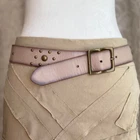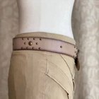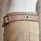 Grunge Stud Belt in Taupe and Bronze Description: taupe colored leather belt with bronze tone buckle and studs by GAP in US women’s size S. Condition: good condition. Some wear to the leather and some creasing throughout, especially in the area with the buckle holes. Dimensions: Length of belt, including buckle: 39.5 inches Length of belt not including buckle: 38.5 inches