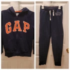 GAP Kids Navy Blue & Orange Boys Sweatsuit with Logo Zip Up Hoodie - Size XL Description: Brand: GAP Kids Type: Sweatsuit Size: Youth XL Gender: Boys Color/Pattern: Navy Blue with Orange Font Material: 100% cotton Condition: Excellent Used Condition Features: Orange GAP name across the chest on the zip up jacket. White embroidered GAP name on pants. *See pics for details* Additional Notes: Smoke-free, pet-free home Machine washable Ready to ship, fast delivery