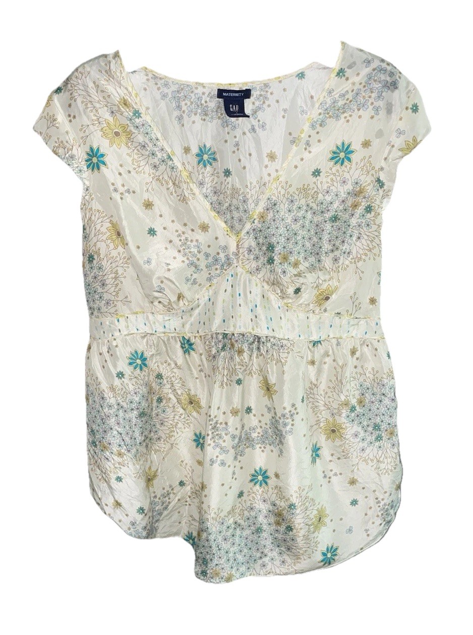 This lot of 2 Gap Maternity summer tops includes a green tank with a side zipper. The sleeveless cap sleeves and lightweight satin floral fabric of the second top make it comfortable and breathable for the summer and spring seasons. The tops are machine washable for easy care. Ideal for regular fit in size small, these basic tops by Gap are a stylish and practical addition to any expectant mother's wardrobe.