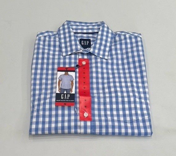 GAP Men's Short Sleeves Poplin Shirt Color: Blue Size: Medium Contents: 97% Cotton, 3% Spandex