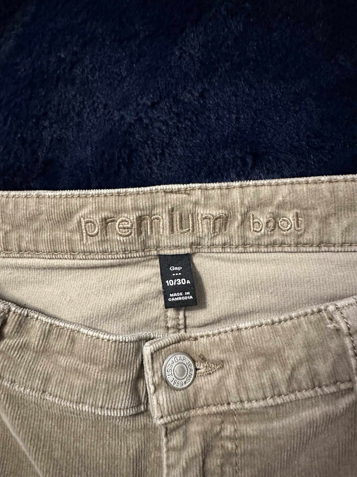 GAP Premium Boot women’s corduroy pants in a versatile light tan neutral. Soft stretch corduroy with a flattering mid-rise and classic bootcut leg. Easy to dress up or down for casual wear, work, or fall outfits. Details: • Women’s size 10 / 30 • Mid rise • Bootcut leg • Stretch corduroy fabric • Zip fly with button closure • 5-pocket style • Color: tan / beige / oatmeal • Pre-owned in good condition with normal wash wear Measurements (approx., laid flat): • Waist: ~16.5–17” • Inseam: ~30” • Leg opening: ~9–9.5” • Rise: ~9.5–10” Please compare measurements for best fit.