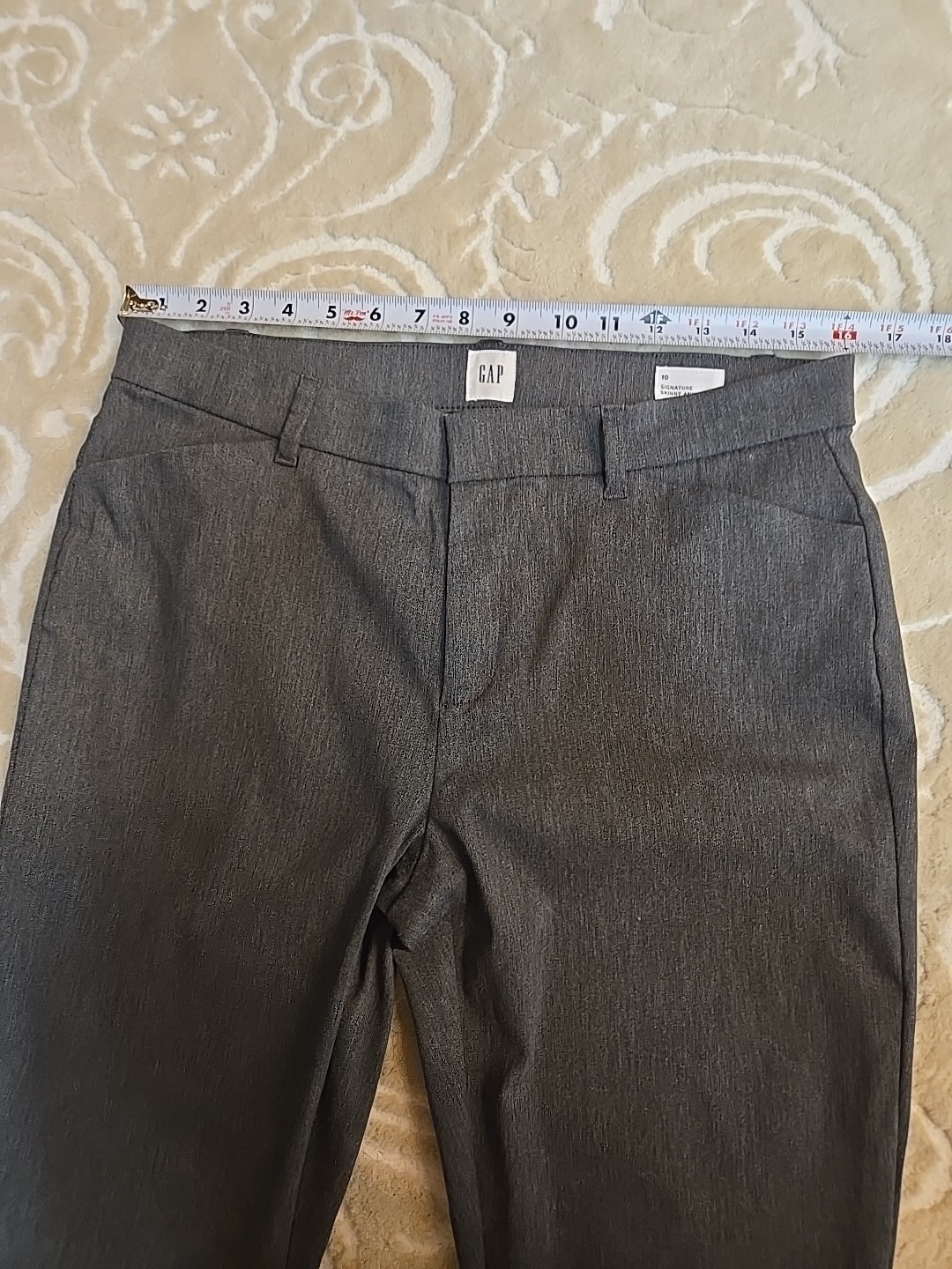 The GAP Signature Skinny Ankle Charcoal Gray Pants in size 10 are a stylish and versatile option for women. Made from a comfortable knit fabric with stretch and pockets, these pants are perfect for casual, business, or travel occasions. The mid-rise and slim fit provide a flattering silhouette, while the ankle length and skinny leg style add a modern touch. The solid gray color and simple front design make these pants easy to pair with any top for a chic and on-trend look. In excellent pre-owned condition No visible flaws Rayon, Nylon, Spandex Machine Wash Cold Please see photos for measurements and details :)