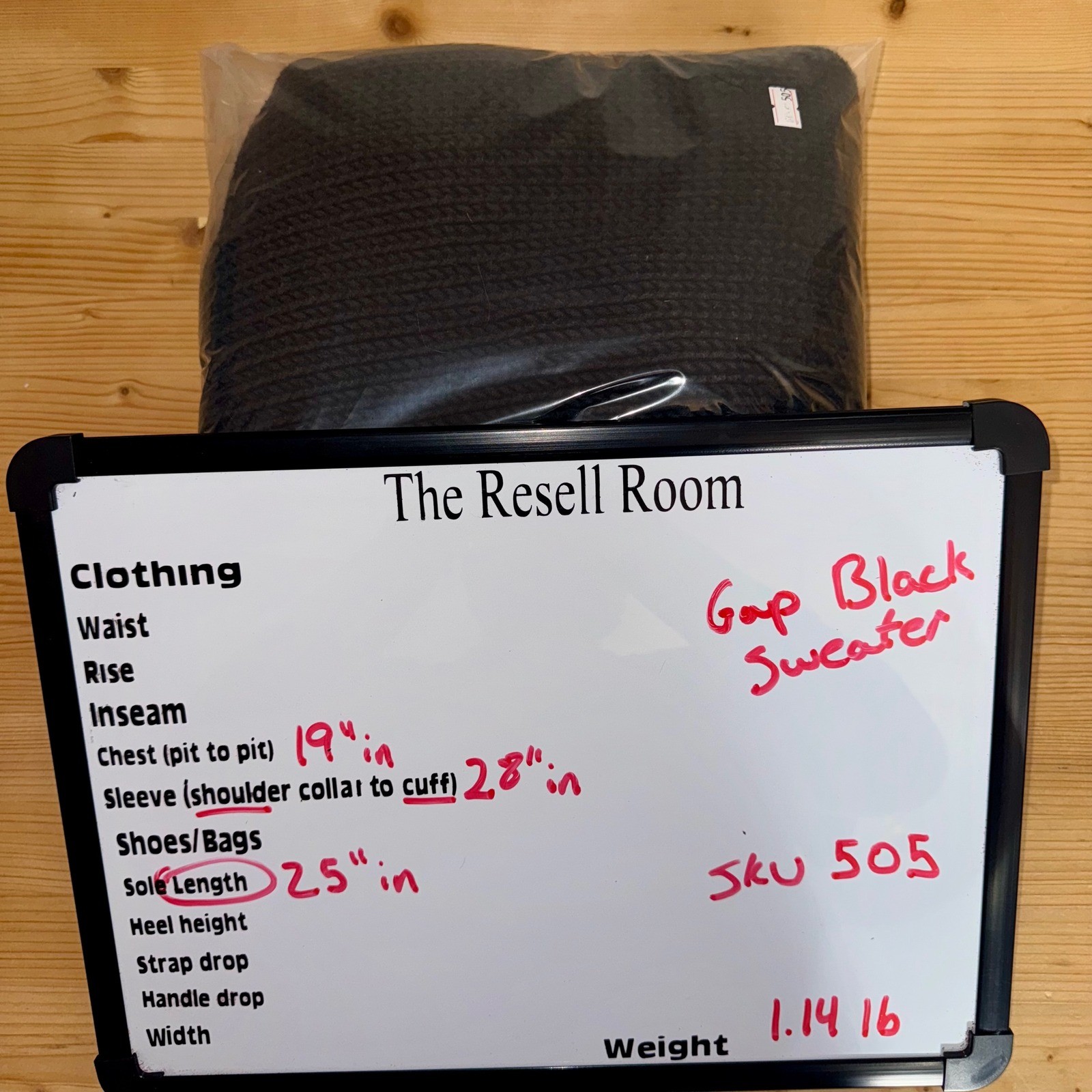 Cozy GAP rib-knit mock neck sweater in classic black, featuring a thick cotton-acrylic blend that delivers warmth, stretch, and everyday comfort. Flattering women's size L silhouette with a structured neckline and chunky stitched texture perfect for winter outfits or layering. ⸻ • Brand: GAP • Style: sweater • Color: black • Size: L (Chest 19.5", Length 25", Sleeve 28") • Material: 60% cotton, 40% acrylic • Made in: Philippines • Weight: 1 lb 14 oz Condition: Excellent pre-owned — no stains, holes, or snags noted. ⸻ KEYWORDS gap sweater, womens mock neck, black rib knit, winter layering piece, chunky knit top, cozy cold weather sweater, classic style women's knitwear, warm cotton acrylic sweater