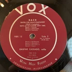 LABEL: Vox CATALOG #: VBX 15 SOLOIST: GASPAR CASSADO (cello) COMPOSER & WORKS: BACH Six Solo Suites CONDITION (VISUAL GRADING): EX lps (light sleeve wear/sleeve scuffs - no scratches or hairline marks). NM insert and NM pamphlet. VG+ jacket (some fraying of surface paper along right side and top right corner). Original Vox inner sleeves. ADDITIONAL DETAILS: Mono 3LP boxset with insert sheet and advertising pamphlet. Released 1960. RVG stamped in deadwax, mastered by Rudy Van Gelder. No returns or negative comments please. ----------B23----- VIRTUOSO VINYL RECORDS DOMESTIC U.S. BUYERS PAYMENT - U.S. buyers to pay by PAYPAL. USA SHIPPING & HANDLING – Your item will be shipped by Media Mail with a tracking number in a good-quality cardboard LP mailer box. If you have specific packaging requests (double boxing, etc), contact me with these special requests BEFORE paying so that I can calculate the extra cost of materials and postage. DISCOUNTED RATES FOR MULTIPLE PURCHASES IF YOU WAIT FOR THE SELLERS INVOICE – For combined shipping, I will add $1 for each additional item added to the shipping cost of the heaviest item. If eBay does not calculate this correctly for you, kindly put your items in a shopping cart together and then click "request invoice" to request a correct combined invoice BEFORE paying. The “request invoice” feature is not available on mobile phone apps so please use a real computer on the ebay site to do so. Please do not forget, the SHIPPING DISCOUNTS DO NOT APPLY if you make separate payments for items or if you pay an improperly-calculated non-discounted ebay-generated total. This is because non-refundable ebay & paypal fees are taken from the shipping as well as from the items when you pay. INTERNATIONAL BUYERS This item is available to international buyers through eBay’s Global Shipping Program (GSP). GRADING : NM (+/-), E (+/-), VG (+/-), (Good, Fair, Poor) Lps are visually graded and have not been sound-tested so it is very possible that there will be noise not mentioned in the description. Vintage sealed items have obviously not been sound tested and carry no warranty. In general I recommend cleaning all lps before playback, as most have not been machine cleaned. NM+ usually means the lp looks brand new or was sealed and was recently opened (I rarely use this grade). NM usually means that the lp has no significant marks and plays with little noise. NM minus will have some sleeve residue, minor surface wear, surface noise, and/or minor scuffs and hairlines. E will show light wear or surface marks and will have some surface noise. VG+ will have medium wear and marks/scratches and will play with surface noise. VG will have heavier wear and significant marks/scratches and will play with considerable surface noise. Jackets - I try to mention significant damage like seam splits, writing and corner creases, but most jackets will show some minor signs of age or shelf wear. NM jackets are usually like new or in original plastic. ADDITIONAL INFO Items are sold AS-IS with no returns/refunds. Please take this into consideration when buying clearance or as-is items or items that are graded below NM. Please view my 75K+ sales and 8K+ feedbacks and feel confident that I am not trying to cheat anyone by using an as-is policy. Kindly ask questions before you purchase an item or request a second inspection - I am happy to help. If you have a problem with an item, kindly send me a message through the eBay message system. Please do not jump to opening a return case without contacting me first. Buyers who do this or who exaggerate in order to force a return will be blocked and reported to eBay. The very high cost of shipping & sales & transaction fees, differing equipment & standards, and the fact that the lps are not fully sound-certified on your equipment are the biggest reasons for my no return policy. Thanks for finding my store and checking out my items – I am sure you will enjoy them! Powered by SixBit's eCommerce Solution
