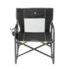 About this item GCI Outdoor Freestyle Rocker XL Heavy Duty Portable Folding Camping Chair, Black Over-sized height and width outdoor rocking chair Patented spring-loaded shocks for a smooth rocking motion Eazy-Fold Technology for safe and simple opening and closing Solid armrests for extra support when sitting down or standing up Durable, nylon mesh backrest for continual airflow to keep you cool in warmer weather Heavy-duty, powder-coated steel frame provides comfort and durability Fold-flat design for storage and transporting Convenient carry handle offers easy portability Convenient beverage holder and phone pocket Weight capacity: 400 lb Open Dimensions: 25.6" Depth x 26.4" Width x 34.8" Height (Seat Height: 20") Folded Dimensions: 25" Depth x 4.9" Width x 34.8" Heigh Item Weight: 13.4 lb Adult chair