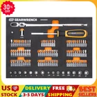 GEARWRENCH 105-Piece 1/4” Drive Slim Head Mechanics Tool Set in Foam Storage Tray 72-tooth ratchet turns fasteners with a 5°swing arc Multi-functional adapter head converts between bit driver and 1/4"" drive ratchet Locking flex-head has 9 positions for maximum access, with flush-mounted forward/reverse lever Slim line head design, 0.73” wide, 0.49” thick, for improved access Bits manufactured from S2 steel for strength and durability When you receive your order and have any queries or concerns about the product, feel free to message us. We guarantee 100% resolution for you. Our commitment is to provide high-quality products and exceptional customer service, ensuring your trust and satisfaction.
