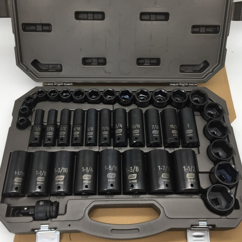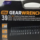 This is a NEW OPEN BOX item. Opened box for part check and imaging. Built for serious torque and long-lasting performance, this 39-piece GEARWRENCH SAE Impact Socket Set delivers strength you can count on. Each socket is crafted from high-strength chrome molybdenum (Cr-Mo) alloy steel to handle the demands of high-powered impact tools in professional shop environments or demanding job sites. The set includes both standard and deep 6-point sockets in a wide range of SAE sizes—from 3/8" to 1-1/2"—plus a 1/2" drive impact-rated universal joint for added versatility. Designed with an off-corner loading feature, the sockets help reduce rounding and wear on fasteners, making them ideal for repetitive use on stubborn or rusted bolts. Easy-to-read laser-etched size markings along with secondary hard-stamped identifiers ensure quick selection, even in low light. The black oxide finish helps protect against corrosion, and everything is neatly packed in a durable blow-molded case for easy transport and storage. Key Features: Forged from chrome molybdenum alloy steel for maximum strength and impact resistance 6-point design with off-corner loading to minimize fastener damage Corrosion-resistant black oxide coating Laser-etched and hard-stamped size markings for fast identification Includes 1/2" drive impact-rated universal joint Convenient blow-mold case keeps tools secure and organized SAE sizes range from 3/8" to 1-1/2" in both standard and deep lengths Ideal for professional mechanics, heavy-duty automotive work, and industrial applications Whether you're working in a garage, shop, or the field, this GEARWRENCH set provides the reliable performance and organized storage that professionals need to get the job done right. We take great care to inspect all items and ensure they are accurately described. Should you have any issues with your purchase, please let us know immediately. We are committed to resolving any concerns promptly and to your satisfaction. Our small business truly appreciates your patronage.