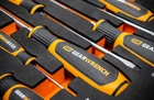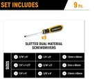 GEARWRENCH 9-Piece Slotted Screwdriver Set in Foam Tray - GWMSSCRSL Dual material handle offers a more comfortable grip and higher performance Non-slip black oxide tip for more secure fit in fastener Ergonomic tri-lobe dual material handle provides the optimal balance of strength and efficiency Full polish alloy steel screwdriver shaft prevents rust and corrosion “Speed Zone” handle design for faster rotation in low-torque applications When you receive your order and have any queries or concerns about the product, feel free to message us. We guarantee 100% resolution for you. Our commitment is to provide high-quality products and exceptional customer service, ensuring your trust and satisfaction.