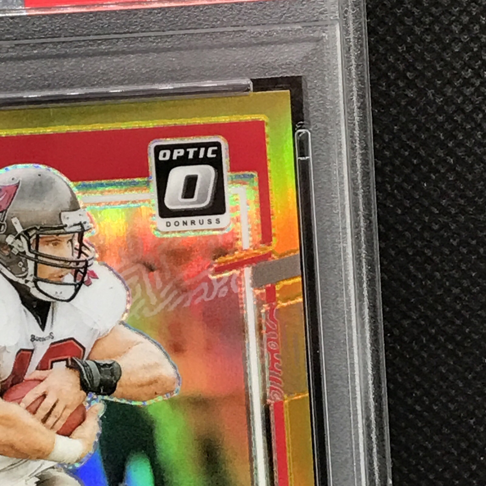 This is a rare and valuable sports trading card featuring Mike Alstott, a former player for the Tampa Bay Buccaneers. The card is part of the 2023 Panini Donruss Optic set and has a gold prizm parallel/variety, making it a highly sought-after item for collectors. It has been professionally graded by the Professional Sports Authenticator (PSA) and has a perfect grade of 10. The card is also serial numbered, hologrammed, and is a short print, making it an even more exclusive and valuable addition to any collection. This card is a must-have for any NFL or sports trading card enthusiast.