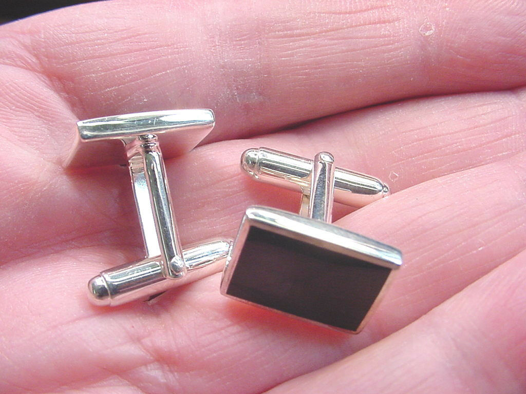 Solid Sterling Silver...marked as shown in photos with the 925 Silver content hallmark and a maker symbol hallmark Genuine Natural Black Onyx Gemstone Spring loaded flip lever closure mechanism Please ask any questions.... We'll try our best to answer promptly...