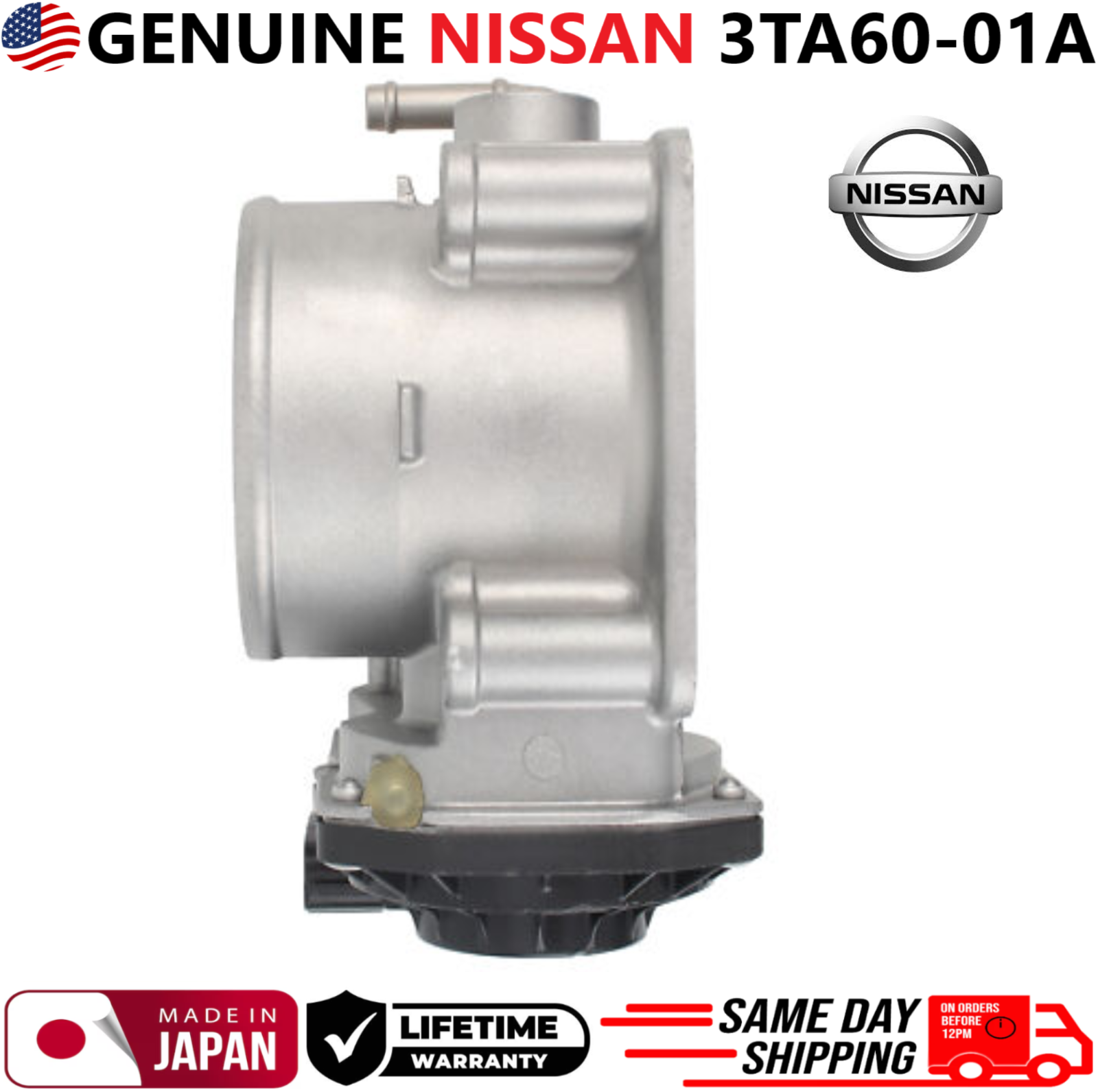 REMANUFACTURED GENUINE NISSAN Throttle Body For 2013-2020 Nissan Altima 2.5L I4 Nissan Rogue 2.5L I4 ***These Parts are NOT aftermarket*** ***FREE SAME DAY SHIPPING & LIFETIME WARRANTY*** ***MADE IN JAPAN*** Manufacturer Part Number: 3TA6001A, 37A60-01 A, 3TA60-01, 37A6001, 16119-37A0A Please use our compatibility chart or verify with your part number to see if these parts a re right for your car!!! Compatible Vehicles, Throttle Body Valve For: > 2013, 2014, 2015, 2016, 2017, 2018 Nissan Altima 2.5L I4 > 2013, 2014, 2015, 2016, 2017, 2018, 2019, 2020 Nissan Rogue 2.5L I4 PLEASE NOTE: YOU WILL RECEIVE THIS PRODUCT EXACTLY AS SHOWN IN THE PICTURE!!! ALL OF OUR PARTS COME WITH NEW NEW HIGH-QUALITY COMPONENTS SUCH AS O-RINGS, SEALS, GASKETS ETC. INTERNALLY AND EXTERNALLY CLEANED WITH VARIOUS ULTRASONIC TREATMENTS USING THE LATEST EQUIPMENT IN THE INDUSTRY. ALL PARTS ARE CHECKED FOR MAJOR DAMAGES & CRACKS , ALL PARTS ARE TESTED BEFORE SHIPPING. ALL REMANUFACTURED PARTS WERE PREVIOUSLY USED MAY HAVE LIGHT SCRATCHES, FADED COLORS AND SIGNS OF USAGE. HOWEVER, THEY STILL FUNCTION AS IF THEY WERE NEW. Highly Recommended: Before installation, you must lubricate all seals and O-rings!!! We highly recommend any auto part to be installed by a professional mechanic. We are not responsible for any damages caused by improper installation. Shipping: Handling time - 1 business day International, Priority, and Express shipping is also available. Warranty: We provide a LIFETIME WARRANTY for all our products (For Warranty claim please contact us) Returns and refunds: We accept returns within 60 days after receiving the package. All returned items must be unused and in the original packaging.