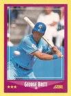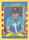 GEORGE BRETT Singles, Inserts, & Parallels PLEASE NOTE: The 1986 Tru Value card has never been opened and the Brett card is inside, the 1986 Meadow Gold Stat Back card has never been opened. The 1987 MSA Jiffy Pop Disc #5 does have some minimal wear on the bottom that is hard to see on the scan. Shipping in the United States is $1.50 for the first item and free for any additional items in any of my Complete Your Set categories, any cards shipped outside the United States is $15.00 per order and this covers all cards purchased. If you need additional pictures of a card or have any questions please feel free to e-mail me. Thanks, Derek