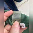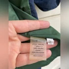 Lightweight EUC Rain Jacket - great layering piece Copper colored hardware for an elevated look Size XS Stand up collar with zippered hood. Front zip and button closure Long sleeves have button up tabs Water repellant 2 Front zip pockets Elasticized cinched waist Fully lined in green Shell 100% Nylon Lining 100% Polyester
