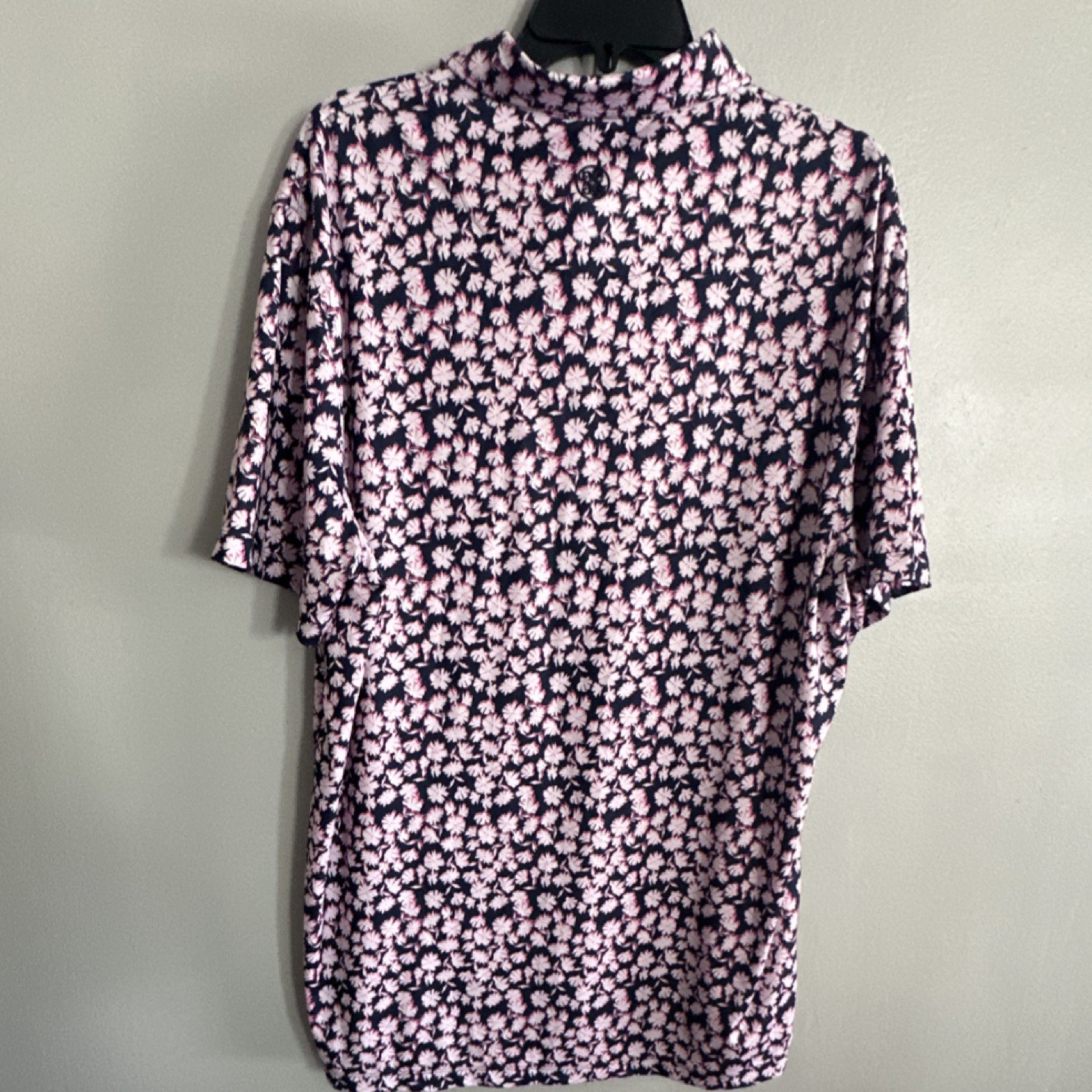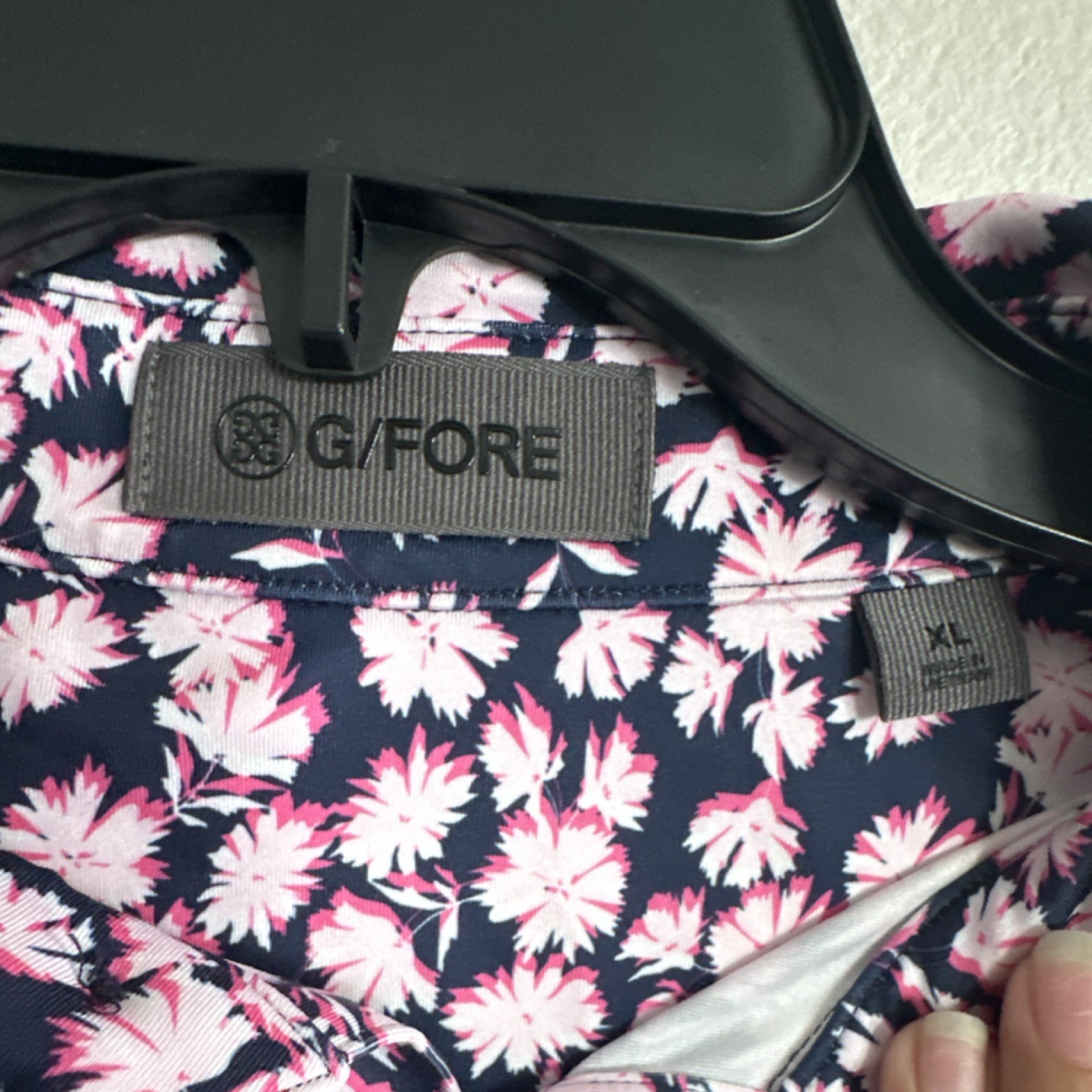 G/FORE XL Golf Polo Shirt Men's Navy Pink White Floral Short Sleeve Logo