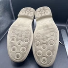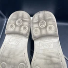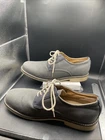 The shoes are medium shade grey with navy blue New shoe laces recommended The material feels like fabric They look dirty in the pictures from the lighting, I assure you they are not Nonsmoking home