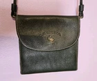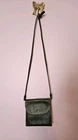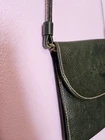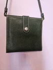 G.H. Bass & Co dark green crossbody bag There is some normal wear on the straps (pictured) & the snap (also pictured) Measures 5 inches wide by 5.4 inches tall when closed. Open the length is 13 inches