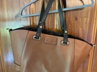 Coach Hampton Signature Logo Tote in Khaki Black Patent Leather