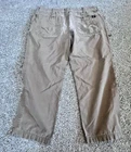Elevate your workwear wardrobe with these G.H. Bass & Co. canvas work pants. These pants feature a heavy-duty construction with a comfortable fit, making them perfect for winter, fall, and spring seasons. The pants come in a solid brown color and have a flat front with a straight leg style and a mid-rise. The pants have multiple accents including a button, zipper, and logo, as well as a slash pocket for added convenience. They are made from a cotton blend material and are machine washable for easy care. These pants are suitable for various occasions including travel, casual wear, and workwear. Available in size 38x30 some staining on front as seen in photo-should wash out with some effort B
