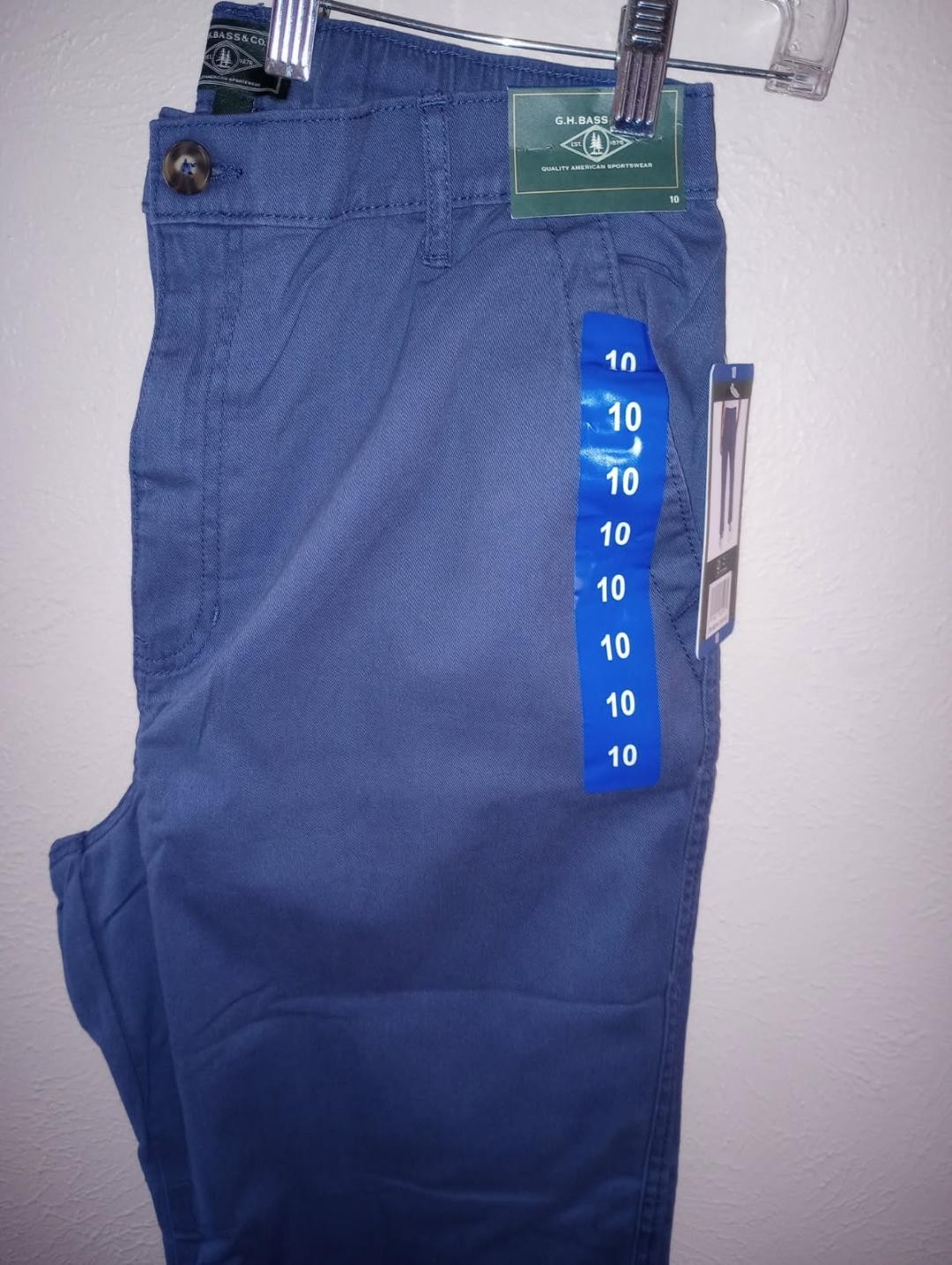New with tags. G.H. Bass & Co. Women's Size 10 Blue Chino Ankle Length Pants NWT. Zip, button. Two front pockets, two back pockets. Light elastic back waist. 98% Cotton, 2% Spandex. Waist lying flat about 16", total 32". Waist measuring all the way around about 32". Front rise about 13". Inseam about 26". Weighs about 14oz. Buy with Confidence with over 25,400+ Positive Feedbacks, buy with Confidence. Measurements are approximate and can vary depending on where they start and end. Cannot guarantee fit but I try and give as much information as possible to help you make a great Purchase. Shipping is based upon weight (which I provide in all listings) and the Shipping Option you choose, 4 options are available. The shipping offered is my Discounted Rate passed onto you the Buyer. Shipping daily. Please understand that I do my best to describe color. I can't guarantee that my Color will be your exact Color since Monitors and Opinions Vary. Happy to Bundle, contact me (I only charge the exact cost to ship Bundles again it's my Discounted rate). Please let me know otherwise I may not notice multiple Purchases. Offers are considered on certain items, use the "Best Offer" button. Sorry, I DO NOT ACCEPT RETURNS, feel free to ask questions. Each month I select a "Charity" to Donate to for many of my listings. Your Business is appreciated and if you like what you see browse my Store to find more items you will love. Add me to your Favorites as New items are added Daily. 6a