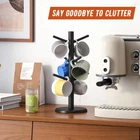 GHWIE Coffee Mug Holder, Tree with 6 Hooks, Cup Black Product Details Color: Black Brand: GHWIE Material: Bamboo Finish Type: Painted Mounting Type: Countertop Style: Stylish Special Feature: Non Slip Recommended Uses For Product: Cup And Mug Theme: Modern Decorative Included Components: Accessories Item dimensions L x W x H: 7 x 7 x 17 inches Number of Hooks: 6 Surface Recommendation: Countertop Manufacturer: GHWIE Part Number: 520-MUG-BJ-BLACK Item Weight: 15.2 ounces Product Dimensions: 7 x 7 x 17 inches Item model number: 520-MUG-BJ-BLACK Finish: Painted Special Features: Non Slip Batteries Included?: No Batteries Required?: No Color: Black Brand: GHWIE Material: Bamboo Finish Type: Painted Mounting Type: Countertop Efficient Organization: This coffee mug holder features 6 hooks to neatly store and display your favorite mugs, keeping your counter clutter-free. Space-Saving Design: The compact and vertical structure of this mug tree allows you to maximize limited counter space while keeping your mugs within easy reach. Sturdy Construction: Made from high-quality bamboo, this mug rack is designed to securely hold your mugs in place without tipping or wobbling. Non-Slip Base: The base of the holder is equipped with non-slip pads, ensuring stability and Avoiding scratching on your countertop. Easy to Clean: With its smooth surface and simple design, this mug holder can be easily wiped clean, maintaining a neat and tidy appearance.