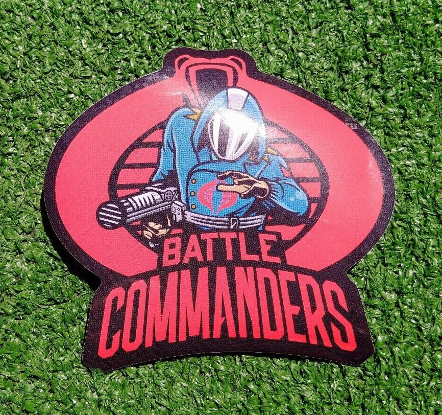New, mint condition, and unused. Cobra Commander Battle Commanders fan Decal Sticker. Measures 4" at the widest part and 4" tall. Peel and stick back. Glossy vinyl durable construction.