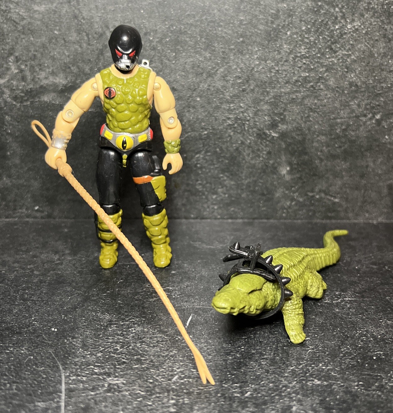 G.I. Joe Cobra Croc Master Figure is the item up for bid Figure is very nice shape with good joints and from a non smoking home. Only some mild play wear O Ring is good Most accessories are included. Only missing hose