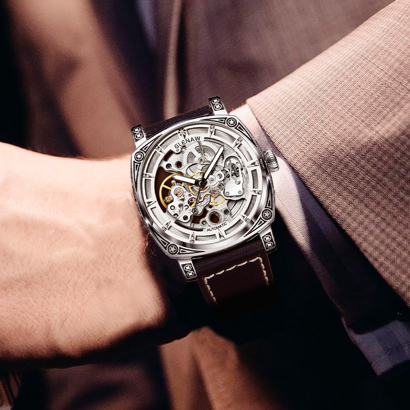 GLENAW Men's automatic machinery tourbillon luxury watch waterproof and luminous
