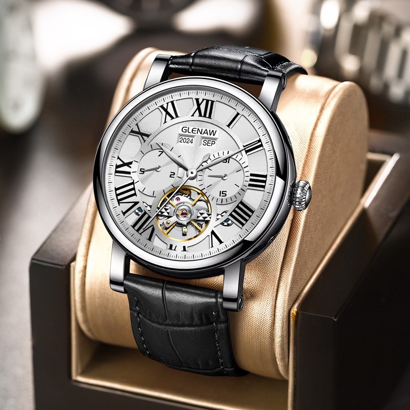 【Accurate Timekeeping】:Adopt high quality automatic movement.GLENAW original movement, accurate timekeeping.Errors within the range of 30s-60s are international standards 【Skeleton Dial Design】:Tourbillon fashionable appearance design. Roman dial matched with day date Calendar display, well-designed in dial layout, exquisite dress up elements, carefully carved, set off the overall beauty, brings you a new visual experience and top brand quality 【Automatic Watches for Men】: Scratch-resistant, high hardness mineral lens, with luminous 3-hand analog display. 44 mm case diameter. This men's formal watch is equipped with a genuine, Genuine leather strap, Stainless steel case using high-gloss cutting technology 【Waterproof Watch】: waterproof to 30 m (100 ft), withstand splashing water or immersion into water in short time, but not suitable for bathing 【Different】: The design of the case exterior is more simple and elegant, with four hidden push buttons on the side of the case to adjust the date, giving this men's watch a more minimalist look that emphasizes your temperament Warm reminder: 1. Please pay attention to confirm whether the delivery address is correct when placing an order. If there is an address error, please contact the seller in advance to correct it. If not, the default address is correct. 2. If you still don't understand the product description before placing an order, you can contact the seller in advance to understand the situation. If you don't communicate in advance, you will know the description attributes of the sold product by default. Thank you very much for your trust and support of our watch products. Your support is the driving force for our continuous progress! Thank you sincerely for your purchase and look forward to serving you again! Our Policy 100% Authentic Guarantee with standard international express shipping. Products are shipped from China or the US (as indicated in the product description). Fast Shipping: Items dispatched within 24 hours (holiday delays may apply). 100% In-House Brand: All products come with original packaging. 30-Day Hassle-Free Returns: Easy returns/exchanges for unsuitable items. 100% Customer Satisfaction: Achieved through excellent communication. If the customer's country collects any import taxes or other taxes, we will not assume any responsibility. Shipping Instructions We do ship these items worldwide, and they typically take 15-25 days to reach the destination. If the product takes significantly longer than 25 days to arrive, please contact us in advance. Remote areas or certain locations may require an additional 3-7 days for delivery. If the customer's country imposes import duties, we are not responsible for paying any import taxes—the buyer is solely responsible for these charges. For standard shipping: Items shipped from China use eBay SpeedPAK Standard. Items shipped from the US use standard carriers such as Yun Express, DHL, UPS, or USPS. Return Policy We strive our best to provide our customers with the highest level of service. If you return the items within 15 days of receiving them for any reason, we will issue a refund. However, the buyer must ensure that the returned items are in their original condition. If the items are damaged or lost during return, the buyer will be responsible for such damage or loss, and we will not provide a full refund. The buyer should attempt to file a claim with the logistics company to recover the costs incurred due to damage or loss. Note: The buyer is responsible for the return shipping costs.