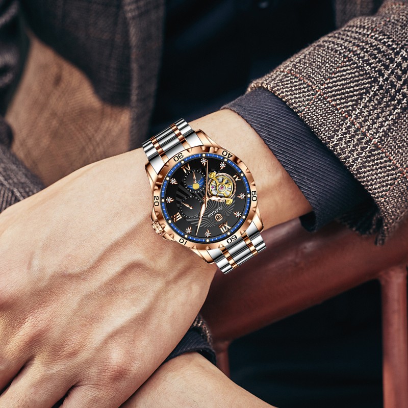 Warm reminder: Please pay attention to whether the delivery address is correct when placing an order, and if you don’t know anything before placing an order, you can contact the seller in advance to find out the situation. I hope you can buy a watch you like! grateful! About this item: ⌚【Automatic Watches for Men】Watch Case Diameter 43MM, Case Thickness:16mm,Strap Width:20mm;Tourbillon Mechanical Men's Watch,Roman scale for unique recognition. ⌚【Mechanical Watches】Operate without battery, automatic self-winding. However, proper manual winding is indispensable,which can effectively reduce time deviation. (⚠Note: Mechanical watch is different from quartz watch. Insufficient mechanical kinetic energy will cause the watch to stop, please winding it in time.) ⌚【30M Waterproof 】3ATM waterproof watch, can withstand the damage to the watch caused by daily splashing, hand washing, sweat, etc, but it is not suitable for diving and hot water environment. ⌚【Gifts for Men】If you want your loved one, friend or leader to feel the same happiness, you can also generously give this men watch as a gift on Valentine's Day, Christmas, Thanksgiving, parties, anniversaries or other holidays. ⌚【100% After-sales Service Guarantee】 : Purchase without Worry. We offer a 30-day money-back guarantee for any reason.If you have problems during use of the wristwatch, please don't hesitate to contact us. We will offer you professional service.