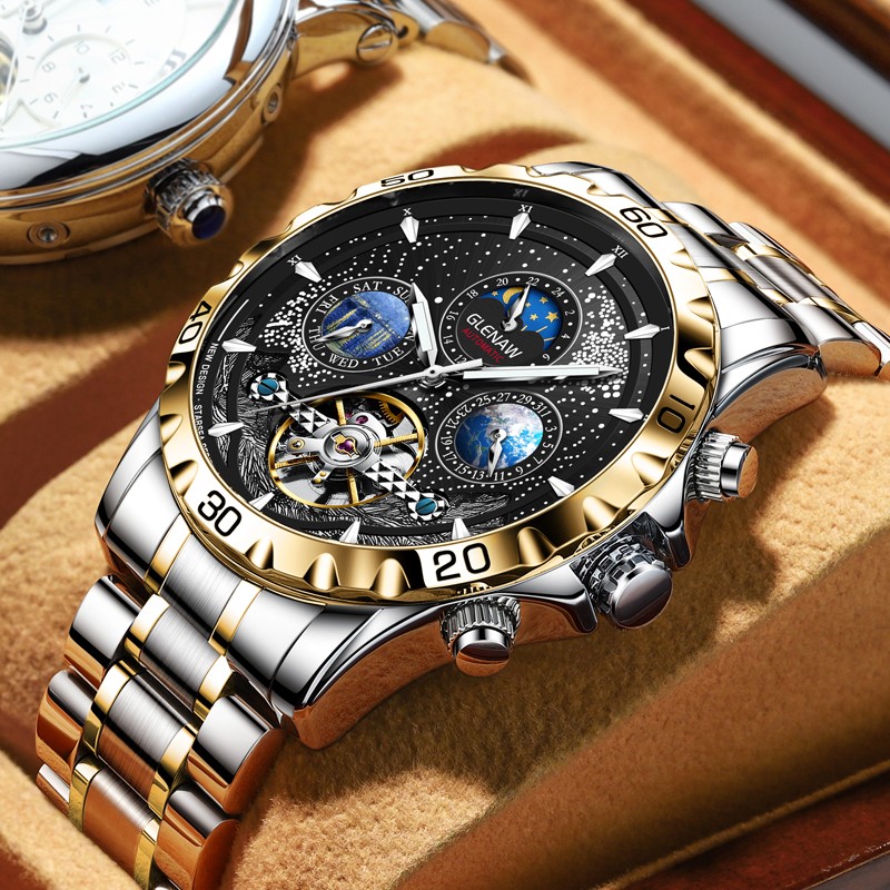 Warm reminder: Please pay attention to whether the delivery address is correct when placing an order, and if you don’t know anything before placing an order, you can contact the seller in advance to find out the situation. I hope you can buy a watch you like! grateful! About this item: ⌚【Automatic Watches for Men】Watch Case Diameter 43mm, Case Thickness:16mm,Strap Width:22mm;The left is the week display, the right is the date display, the hands can be moved. ⌚【Mechanical Watches】Operate without battery, automatic self-winding. However, proper manual winding is indispensable,which can effectively reduce time deviation. (⚠Note: Mechanical watch is different from quartz watch. Insufficient mechanical kinetic energy will cause the watch to stop, please winding it in time.) ⌚【30M Waterproof 】3ATM waterproof watch, can withstand the damage to the watch caused by daily splashing, hand washing, sweat, etc, but it is not suitable for diving and hot water environment. ⌚【Gifts for Men】If you want your loved one, friend or leader to feel the same happiness, you can also generously give this men watch as a gift on Valentine's Day, Christmas, Thanksgiving, parties, Father's Day,anniversaries or other holidays. ⌚【100% After-sales Service Guarantee】Purchase without Worry. We offer a 14-day money-back guarantee for any reason.If you have problems during use of the wristwatch, please don't hesitate to contact us. We will offer you professional service.