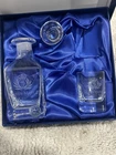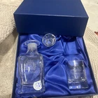 The GLENCAIRN Crystal Queen Mary 2 Small Decanter Bottle with Shot Cordial Glass is a collectible item inspired by the iconic cruise ship Queen Mary 2 by Cunard. Made of high-quality crystal, this elegant decanter bottle features a shot cordial glass design that adds a touch of sophistication to any collection or display. Perfect for transportation enthusiasts or fans of luxury cruise ships, this piece is a unique and eye-catching addition to any home or office decor. Originally had 2 cordial shot glasses, 1 broke in transportation