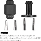 Features: 【Heavy-duty Steel & Nylon】Made of high quality steel and nylon for robustness and durability. 【Perfect Replacement】For replacing injector PTFE O-rings. 【Excellent Sealing Effect】Specifically designed for proper seal sizing and easy seal installation on the injector for leak-free operation. 【Complete Kit】Each recess is equipped with 2 seal mounting guides, a seal mounting driver and a compression sizer. Material: Steel, Nylon Finish: Knurled Design Package Includes: 1 x Long Seal Installer Guide replace for EN-49245-1 1 x Short Seal Installer Guide replace for EN-49245-2 1 x Seal Installer Pusher replace for EN-49245-3 1x Seal Sizer Tool replace for EN-49245-4 1 x Seal Installer Adapter Alt replace for EN-51105-1 1 x Seal Installer Adapter Alt replace for EN-51105-2 Fitment For: For Holden Colorado 7 2016 For Subaru 2.0L 2.4L turbo engines 2014-2019 For General Motors 2.0L 3.6L engines with Hitachi fuel injectors 2010-2017 For GM 2.0L 2.4L 2.5L 5.3L 6.2L engines For Bosch,For Continental and For Delphi fuel injectors 2012-2017