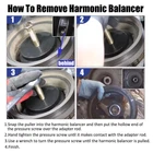 Description: GM Harmonic Balancer Puller is saves you time when removing harmonic balancers without tapped holes — no need to remove the radiator. Many balancers found on GM and Chrysler/Jeep/Dodge do not have tapped holes, this tool features a "clip-in" design allowing removal without bolting the puller to the balancer. Features: 【Compatibility】 Compatible with GM engine models: 5.3L, 5.7 LS1, 6.0 LS2, 6.2 LS3, 7.0L , compatible with Chrysler,Dodge, Jeep engine models: 3.5 L V6, 3.6L V6, 4.7 L V8, 5.7 L V8, 6.1 L V8. Not applicable to 1997 or earlier general LT (5.7L LT1<4) series engines (threaded holes), not applicable to 2018 and newer Coyote balancers. 【Unique Design】 The harmonic balancer puller adopts a "clamp-in" design, which can be disassembled without connecting the puller bolts to the balancer, which helps removing the balancer quickly and easily. 【Material】 Constructed from high quality carbon steel material , it is solid, durable and no deformation .The surface is coated with black paint, which can resist corrosion and rust, ensures long-term service. 【Benefits】 When this harmonic balancer pullers (without threaded holes) is working on the balancer, it do not require disassembly of the radiator. This is a unique design of buckle attachment that can be disassembled without fixing the tie rod to the balancer. 【Satisfaction Guarantee】 If you're not 100% satisfied with this tool set , simply return it for a full refund in 30 days, guarantee with 12 months’ warranty. Specifications: Designed to Remove Harmonic Balancers without Tapped Holes Time Saving Tool - No Need to Remove Radiator GM Applications: 5. 3 L, 5. 7LS1, 6. 0 LS2, 6. 2 LS3, 7. 0 L Chrysler/Jeep/Dodge: 3. 5 L V6, 3. 6L V6, 4. 7 L V8, 5. 7 L V8, 6. 1 L V8 Usages: 1. Lubricate and thread the pressure screw into the puller tool. 2. Using a ratchet remove harmonic balancer’s retainer bolt. 3. Stick the adapter rod into the center of the harmonic balancer and then put the hollow end of the pressure screw over the adapter rod. 4. Insert the jaws through the spoked areas so they’re gripping the center hub. 5. Hand tighten the pressure screw until it makes contact with the adapter rod. 6. Use a ratchet to turn the pressure screw until the harmonic balancer is pulled. Package Including: 1x Balancer Puller