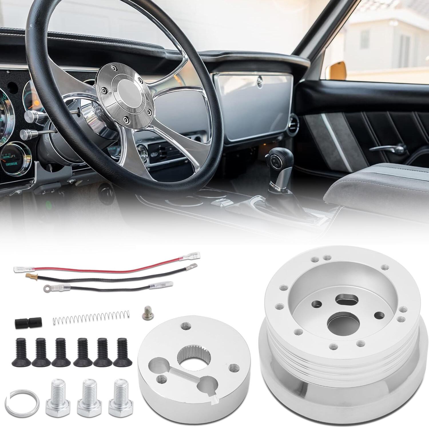 5 & 6 hole steering wheel hub adapter. Fits both standard 5 and 6 hole patterns, and any of our 5 or 6 hole wheels. Will not work with Nardi/Personal's 6 hole pattern. Description: 【High Quality】 【Function】 【Easy Installtion】 Fit for following vehicles: for Flaming River/ Ididit using late model for GM/Chevy splines: All Years; for Chevrolet (excluding Corvette): All Models 1969-94 (*excluding. Corvette, Sprint, Spectrum, 86-88 Nova). for Chevrolet / GMC (Trucks and Vans): Truck Models: 1974-1994. for Chevrolet / GMC (Trucks and Vans): El Camino, Sprint, Caballero: 1968-1988. for Chevrolet / GMC (Trucks and Vans): for Chevy/GMC Van: 1982-1994 for Chrysler Corp-DOMESTIC CARS (for Dodge, for Chrysler, for Plymouth): Tilt Column: 1978-1981. for Chrysler Corp-DOMESTIC TRUCKS & VANS (f For GM Chevy 5 & 6 Hole Steering Wheel Polished Hub Adapter Flaming River Ididit 5 & 6 hole steering wheel hub adapter. Fits both standard 5 and 6 hole patterns, and any of our 5 or 6 hole wheels. Will not work with Nardi/Personal's 6 hole pattern. Description: 【High Quality】This adapter made of high-quality aluminum billet with polished finish, designed for superior durability, corrosion resistance 【Function】Wheel hub adapters ensure a secure and reliable connection between the steering wheel and steering column, improving handling and overall driving experience. Enhance overall steering response, control, and driving experience 【Easy Installtion】Direct bolt-on Installation and quick disassembly Fit for following vehicles: for Flaming River/ Ididit using late model for GM/Chevy splines: All Years; for Chevrolet (excluding Corvette): All Models 1969-94 (*excluding. Corvette, Sprint, Spectrum, 86-88 Nova). for Chevrolet / GMC (Trucks and Vans): Truck Models: 1974-1994. for Chevrolet / GMC (Trucks and Vans): El Camino, Sprint, Caballero: 1968-1988. for Chevrolet / GMC (Trucks and Vans): for Chevy/GMC Van: 1982-1994 for Chrysler Corp-DOMESTIC CARS (for Dodge, for Chrysler, for Plymouth): Tilt Column: 1978-1981. for Chrysler Corp-DOMESTIC TRUCKS & VANS (for Dodge, for Chrysler, for Plymouth): 2/4WD Pick-up, Trailduster, Ramcharger, Van: 1979-1981. for JEEP: CJ5, CJ6, CJ7, Wrangler, Cherokee, Wagoneer, Pick-up, Scrambler, Comanche: 1976-1995. for JEEP: Cherokee, Wagoneer, Pick-up: 1974-1975. for OLDSMOBILE: All Models (excluding telescopic column): 1969-1993. for PONTIAC: All (excluding 88-on LeMans): 1969-1993. Will not work with Nardi/Personal's 6 hole pattern. Package Included 1 PC 5 & 6 Hole Billet Steering Wheel Hub Adapter Payment Shipping Return Contact us About us Payment 1.Paypal, Credit Card, G Pay etc, many payment way is accepted. 2.Please be sure your shipping address is correct before make a payment. Shipping 1.We will ship out the item within 1-3 business days after comfirming the payment, appreciate your patience. 2.If the items are broken on the way( we will check the orders clearly before we sent them ),please contact us in 3 days you received it. We will send you a new one or refund your payment. Return 1.We stand behind every buyer.Items can be returned for exchange or refund within 30 days. 2.Please contact us when you have any confusion of our item, we will solve the trouble for you as soon as possible. Contact us 1.This is professional Seller.We will reply your message within 24 hours. 2.Please contact us whenever you have any question about the item. We will deal with it as soon as possible. 3. If you are unhappy with the item or our service,please Contact Us before leave feedback,just give me a chance,thank you! About us 1. Unless specified otherwise, all our products are IN STOCK and are shipped from Local warehouse - Not Overseas! 2. We provide a 30 day Satisfaction Guarantee or your money back (provided items are in the same new and resaleable condition.) 3. We have a PayPal Verified Business Account, please buy with Confidence! 4. Every item will be tesrted before send.We know our products well and if we don't have the answers we will do our best to find them for you! 5. Our friendly team look forward to serving you! Your satisfaction is our No.1 Priority We will do our best to satisfacy you.