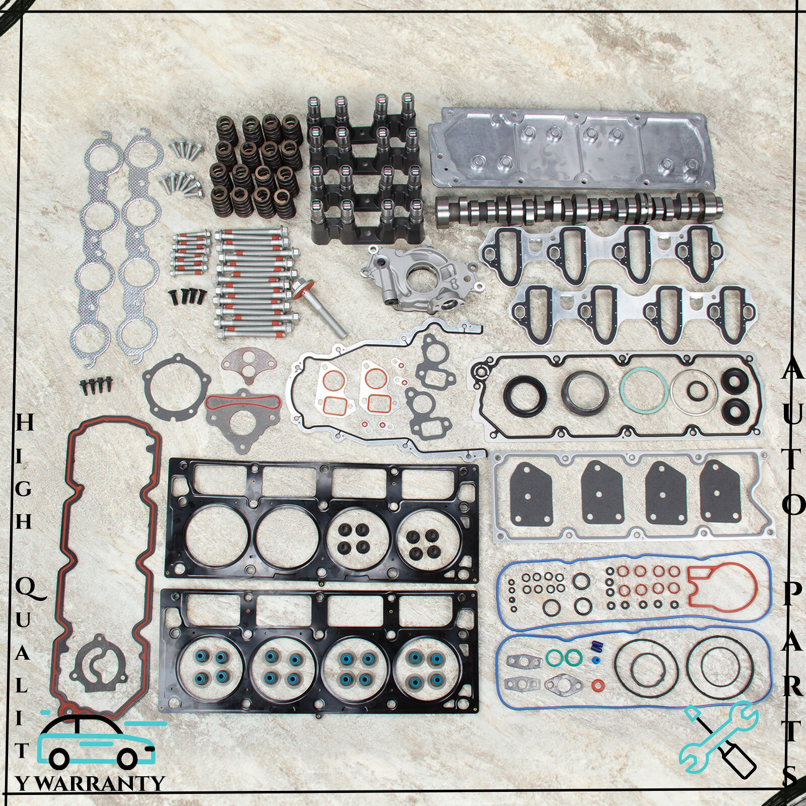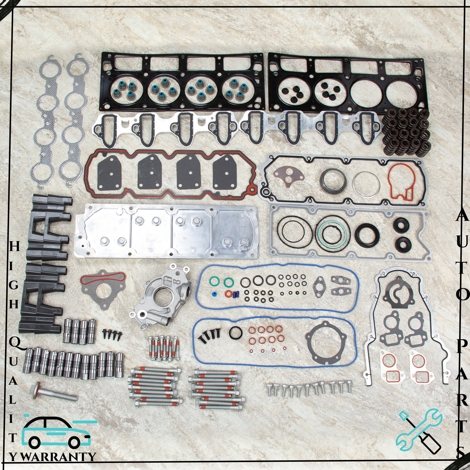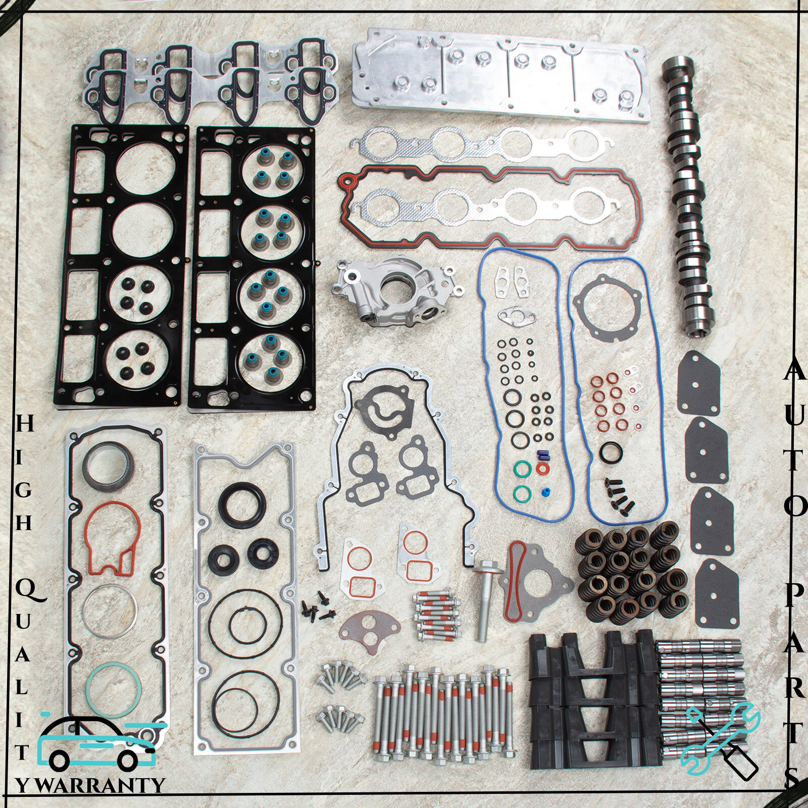 Description: This head gasket set with lifters is just what you need to keep your car in good running order. The head gasket set with lifters that you will receive in this kit are high quality gaskets and lifters that the dealers and rebuilding shops use everyday. So do not settle for lesser quality parts when it comes to engine repair. These gaskets and lifters are designed for the professional installer. It does not come with any installation instructions. If you do not have a service manual, please consult a professional mechanic prior to installing this head gasket set with lifters. Choose the kit that is best for you. We have matched common components that are often used when installing this NON AFM DOD KIT. Chevy Gen 4 LS Non AFM DOD Valley Cover Block Off Plate for 4.8L 5.3L 6.0L 6.2 M295 Engines Standard Volume Oil Pump for Chevrolet 4.8L 5.3L 6.0L GM LS1 LS2 LS3 Set of 16 Performance Beehive Valve Spring Kit - LS6 - .550" LIFT - 12625033 GM LS1 LS2 LS3 LS6 LS7 LQ4 Camshaft Thrust Locator Plate Washer + Flat Bolts Kit Part Numbers: HS8-10448LET, HB10448L, SL1000, TCS10448, LF306(x16), T306, 12557840, 12689035, 12598832 Specification: Type:TURN OFF AFM DOD KIT Kit or Single Part:Kit Items Included:AFM NON DELETE KIT, Some Matched Common Components Placement on Vehicle:Front Greasable or Sealed:Sealed Compatible Engines:Cancer and Reproductive Harm. Material:Multiple Layers Steel (MLS) Fitment Type:Direct Replacement OE Spec or Performance/Custom:OE Spec Lifter Pieces:16 Is have Trays:4 Trays Fitments: 2007 BUICK RAINIER 5.3L 5328CC 325CID V8 OHV 2007-2013 CHEVROLET AVALANCHE 5.3L 5328CC 325CID V8 FLEX OHV 2007-2009 CHEVROLET AVALANCHE 5.3L 5328CC 325CID V8 OHV 2007 CHEVROLET SILVERADO 1500 CLASSIC 5.3L 5328CC 325CID V8 ELECTRIC/GAS OHV 2007 CHEVROLET SILVERADO 1500 CLASSIC 5.3L 5328CC 325CID V8 FLEX OHV 2007 CHEVROLET SILVERADO 1500 CLASSIC 5.3L 5328CC 325CID V8 OHV 2007-2013 CHEVROLET SILVERADO 1500 5.3L 5328CC 325CID V8 FLEX OHV 2007-2009 CHEVROLET SILVERADO 1500 5.3L 5328CC 325CID V8 OHV 2007-2014 CHEVROLET SUBURBAN 1500 5.3L 5328CC 325CID V8 FLEX OHV 2007-2013 CHEVROLET SUBURBAN 1500 5.3L 5328CC 325CID V8 OHV 2007-2014 CHEVROLET TAHOE 5.3L 5328CC 325CID V8 FLEX OHV 2007-2014 CHEVROLET TAHOE 5.3L 5328CC 325CID V8 OHV 2007-2008 CHEVROLET TRAILBLAZER 5.3L 5328CC 325CID V8 OHV 2007-2009 GMC ENVOY 5.3L 5328CC 325CID V8 OHV 2007 GMC SIERRA 1500 CLASSIC 5.3L 5328CC 325CID V8 ELECTRIC/GAS OHV 2007 GMC SIERRA 1500 CLASSIC 5.3L 5328CC 325CID V8 FLEX OHV 2007 GMC SIERRA 1500 CLASSIC 5.3L 5328CC 325CID V8 OHV 2007-2013 GMC SIERRA 1500 5.3L 5328CC 325CID V8 FLEX OHV 2007-2009 GMC SIERRA 1500 5.3L 5328CC 325CID V8 OHV 2010-2013 GMC SIERRA 5.3L 5328CC 325CID V8 OHV 2007-2014 GMC YUKON XL 1500 5.3L 5328CC 325CID V8 FLEX OHV 2007-2009 GMC YUKON XL 1500 5.3L 5328CC 325CID V8 OHV 2008-2014 GMC YUKON 5.3L 5328CC 325CID V8 FLEX OHV 2008-2010 GMC YUKON 5.3L 5328CC 325CID V8 OHV 2007-2009 SAAB 9-7X 5.3L 5328CC 325CID V8 OHV Package Include: AS The Options You Choose Notice: You must have your computer re-programmed to disable the AFM program. Tuning is required when disabling the NON/AFM system. This kit does not delete the VVT system. The camshaft work with VVT or NON-VVT system.
