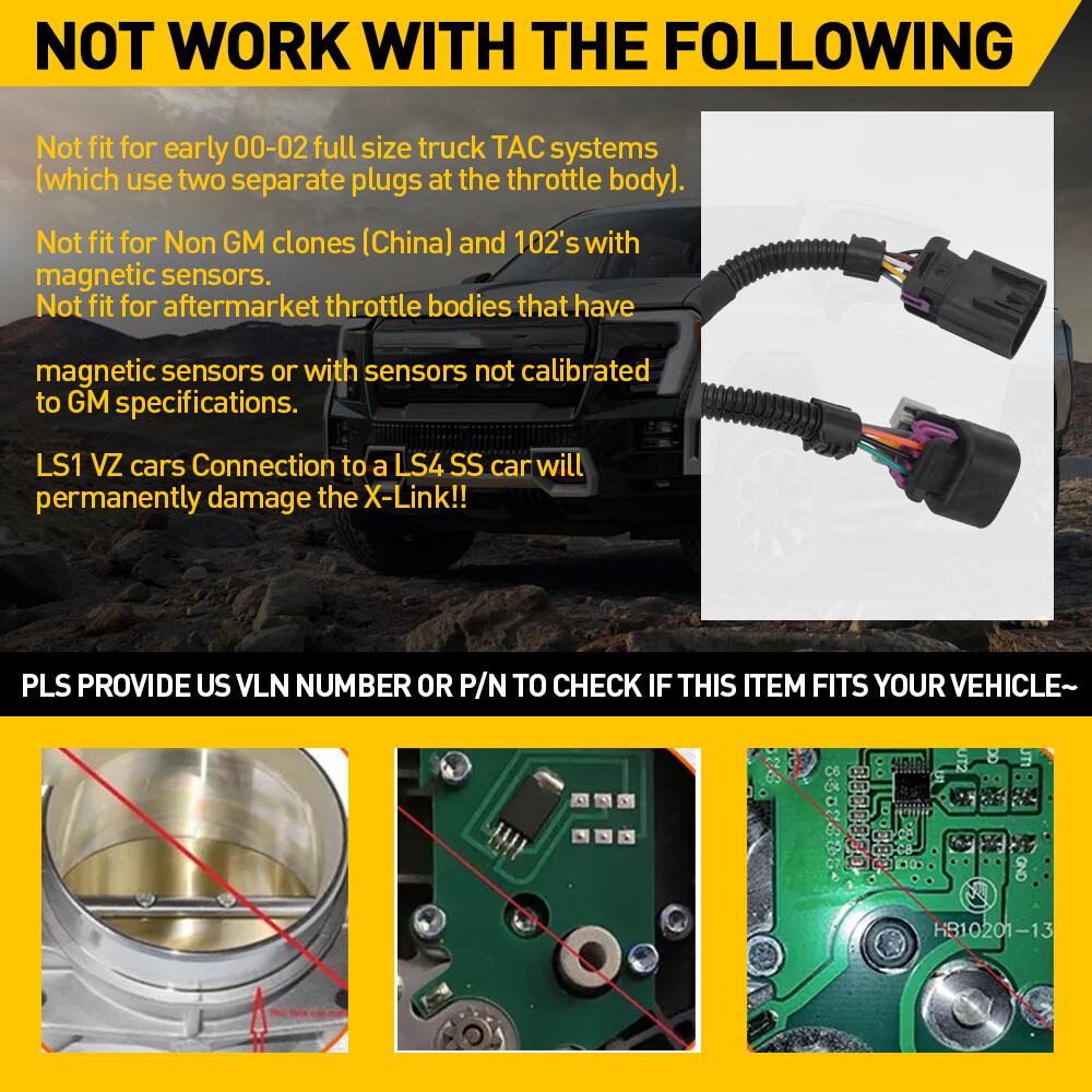 Fit for: For 03-07 GM full size V8 trucks (as Silverado, Sierra, SUV,etc..). For 04-05 Holden VZ LS1. For 04-04 Chevy SSR. For GM 90mm LS2/LS7/LS3 Car style or 87mm Truck/LS9 style and Nick Williams 103/112mm throttle bodies. Not work with the following: Not fit for early 00-02 full size truck TAC systems(which use two separate plugs at the throttle body). Not fit for Non GM clones (China) and 102's with magnetic sensors. Not fit for aftermarket throttle bodies that have magnetic sensors or with sensors not calibrated to GM specifications. LS1 VZ cars Connection to a LS4 SS car will permanently damage the X-Link!! Specifications: for Silverado Sierra SUV GM V8 trucks 8Pin To 6Pin Throttle Body Adapter Harness Fit for: For 03-07 GM full size V8 trucks (as Silverado, Sierra, SUV,etc..). For 04-05 Holden VZ LS1. For 04-04 Chevy SSR. For GM 90mm LS2/LS7/LS3 Car style or 87mm Truck/LS9 style and Nick Williams 103/112mm throttle bodies. Not work with the following: Not fit for early 00-02 full size truck TAC systems(which use two separate plugs at the throttle body). Not fit for Non GM clones (China) and 102's with magnetic sensors. Not fit for aftermarket throttle bodies that have magnetic sensors or with sensors not calibrated to GM specifications. LS1 VZ cars Connection to a LS4 SS car will permanently damage the X-Link!! Specifications: OE Numbers: 25383922, 25379713, 12580420 12605109, 19420707, 12570790 Product Material: High-quality ABS & Copper NOTE: Professional installation is highly recommended, installation instruction is NOT included. Features: *Reliable Signal Transmission The wiring harness provides the necessary power for the throttle, quickly transmits control signals, and accurately controls the opening and closing of the throttle. At the same time, it feeds back the position or status of the throttle to the ECU so that you can make real-time adjustments. *Improved Driving Experience The engine's power response can be made faster and more agile by optimizing throttle control, which not only effectively improves the engine's combustion efficiency and reduces fuel consumption, but also makes the acceleration process smoother and the driving feeling more comfortable. *High Quality Made of high-quality copper wire, the surface is wrapped with ABS plastic. *Excellent Performance It can effectively reduce problems such as weak acceleration, unstable idling, sudden engine stalling, etc. caused by wire damage, and provide a long-term reliable service for your engine. *Regular Maintenance To ensure smooth throttle operation and prolong its service life, it's important to periodically check the wiring integrity of the throttle harness, clean carbon build-up, and check the plug connections to ensure that the throttle harness has a tight and reliable plug connection. NOTE: Professional installation is highly recommended, installation instruction is NOT included. Packaging Include: 1x Throttle Body Adapter Harness Item Specifics Brand Unbranded Connector Quantity 2 Interchange Part Number 12580420 25379713 4.8L 5.3L Gen 4 Gen IV LM7 LQ9 Sierra SUV Tahoe 12575384 25383922 6.0L Gen 3 Gen III LQ4 LS/LSx Silverado TBSS/L92 Intake TBSS/NNBS/L92 Intake Manifold Items Included Throttle Body Adapter Harness Manufacturer Part Number 25383922, 25379713, 12580420, 12605109, 19420707, 12570790 OE/OEM Part Number 25383922 25379713 12580420 Type Throttle Body Features Electronic Color Black Connector Type Pin Manufacturer Warranty 1 Year Material Plastic Universal Fitment No Superseded Part Number 12605109 19420707 12570790 Performance Part Yes Vintage Car Part No Payment We can accept payment by credit, debit, and gift cards; Apple Pay, Google Pay, PayPal, and PayPal Credit. Shipping 1. All items will be shipped in 24 hours after receiving your payment . 2. We ship this item to US only via USPS first class mail. It usually takes 3-5 working days to deliver. Returns 1. We offer 60 days return policy. 2. Please contact us within 60 days from the date you receive your package if you have any questions with the products . 3. Refund will be sent after we got your returned package. 4. All returned items should be in the original packaging with tracking number. Contact Us We work from Monday - Saturday 9:00AM - 6:00PM PST, but we will reply you once we get your message .There will be some delay on response if you send message or E-Mail on Sunday. DESCRIPTION PAYMENT SHIPPING RETURN POLICY CONTACT US Hot item Help & Info Payment Policy Shipping Policy Return Policy FAQ About Us for Silverado Sierra SUV GM V8 trucks 8Pin To 6Pin Throttle Body Adapter Harness Fit for: For 03-07 GM full size V8 trucks (as Silverado, Sierra, SUV,etc..). For 04-05 Holden VZ LS1. For 04-04 Chevy SSR. For GM 90mm LS2/LS7/LS3 Car style or 87mm Truck/LS9 style and Nick Williams 103/112mm throttle bodies. Not work with the following: Not fit for early 00-02 full size truck TAC systems(which use two separate plugs at the throttle body). Not fit for Non GM clones (China) and 102's with magnetic sensors. Not fit for aftermarket throttle bodies that have magnetic sensors or with sensors not calibrated to GM specifications. LS1 VZ cars Connection to a LS4 SS car will permanently damage the X-Link!! Specifications: OE Numbers: 25383922, 25379713, 12580420 12605109, 19420707, 12570790 Product Material: High-quality ABS & Copper NOTE: Professional installation is highly recommended, installation instruction is NOT included. Features: *Reliable Signal Transmission The wiring harness provides the necessary power for the throttle, quickly transmits control signals, and accurately controls the opening and closing of the throttle. At the same time, it feeds back the position or status of the throttle to the ECU so that you can make real-time adjustments. *Improved Driving Experience The engine's power response can be made faster and more agile by optimizing throttle control, which not only effectively improves the engine's combustion efficiency and