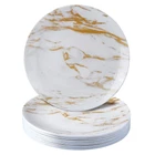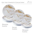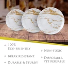 GOLD MARBLE DESIGN PLATES | Elegant Salad Plates | Carrara Marble Collection | 9” – 10 PC PREMIUM QUALITY: Our dinnerware sets are non-, made from high heavyweight plastic materials. These are safe to use for hot, wet, and cold foods. MARBLE DESIGN: Deck your table with this painted marble stone design plate. It will bring the whole event to a new level. INCLUDES: 10 Salad Plates STURDY AND DURABLE: These gold party plates are sturdy enough to handle large amounts of food making it the perfect option for main courses and more. The secret is yours; no else will know that these are disposable. CONVENIENT: This disposable plate set is the hassle-free alternative to real dinnerware. Simply dispose of them after the party and relax. To reuse them at a later time, simply hand-wash and them away. SERVES ALL YOUR CATERING NEEDS: These marble plates are the ideal choice for all occasions ranging from weddings to home dinners and more
