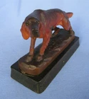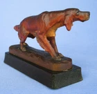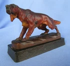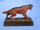 Gordon Irish Setter ANRI ITALY DOG FIGURINE or other hunting bird dog type .... detail shows hand painted piercing tri color eyes, eye brows, nose, mouth, jowls, great floppy ears and tail, hips, shoulders, toes...defined fur with blackish accents on top and cream color accents on chest & tummy....dog is 4" long nose to tail tip.....expertly hand carved wood hunting dog on solid wood base ...signed DILLER......no breaks,cracks....minor paint wear from age and use......check out my other hunting dogs.....copyright Morning Line .......when making an offer please keep in mind ebay charges me 20% on the total order including shipping/insurance........USPS insured priority mail only....