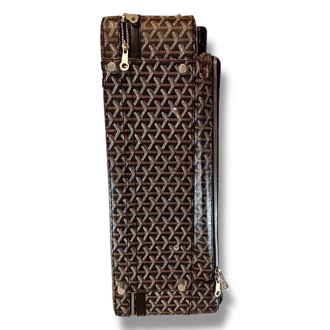 This GOYARD Saint Louis Trolley PM suitcase is a fantastic vintage find! The herringbone pattern is timeless, and despite minor scratches, it’s in great condition. The telescopic handle, carry bar, and wheels work smoothly, and the exterior has been carefully polished. Perfect for travel with a touch of luxury!