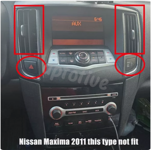Please note that our product does not match the direction of the ventilation openings circled in picture three. Please do not purchase. Fitment: For Nissan Maxima 2008-2013 Features: HD 10'' 2.5D Tempered Glass Mirror auto radio player. Wireless & Wired Carplay: wired or wireless Carplay in-vehicle system can closely integrate the user's iOS device and iOS experience with the dashboard system. Users who use wireless Carplay can connect to the car system via Bluetooth to realize voice-controlled navigation, make calls, send and receive messages, and listen to music. It is only available for iPhone (ZLINK APP) Wireless & Wired Android auto: wired or wireless Android auto in-vehicle system can closely integrate the user's Android device and Android experience with the dashboard system. Users who use wireless Android auto can connect to the car system via Bluetooth to realize voice-controlled navigation, make calls, send and receive messages, and listen to music. It is only available for Android phone(Android phones need to download android auto APP) Built-in GPS Navigation: Users can purchase directly from play store for offline navigation. With wifi connected, Google Maps can be used perfectly, you can go anywhere you want and never get lost again. High definition 1080P: Full capacitance touch screen for easy operation, well designed user interface for car only Built-in WIFI: Connect to WIFI, and you will find a new world,the most convenient one is the online map. Rear Camera: support camera image input,you can switch CVBS simply by choosing in the settings DSP Function: High fidelity, reproduced sound highly similar to your original sound Steering wheel control: Through it you can control the functions you need by steering wheel, more convenient Built-in Bluetooth with A2DP/Hands Free/Phone Book: Bluetooth hands-free calls,Bluetooth music player,Auto loading phonebooks Driving Recorder: You can choose a recorder, and the car has playback, the evidence can be retained(requires optional) Double USB Adapter Input: You can enjoy music from you mobilephone without any cables, and also support USB connetion. Support File Manager: Support download, install and delete over thousands of android apps Support Multilanguage: Support languages, up to 40 national languages FM Radio: Online music you can transfer the music to the car stereo by FM to enjoy the original car stereo sound,with 18 preset stations Time Setting: You can use the network or GPS to open the date and time automatically, or you can adjust it manually. 27 Desktop Themes: Long press the home screen to switch between different desktops and achieve different new experiences. Pick your favorite! Specifications: System:Android 13 Chipset:8227L-DEMO Screen size:10'' Memory:2GB (RAM)+32GB (ROM) Screen resolution:1024*600 Radio chip:MT6625 Power output:4*45W Work temperature:-20℃-75℃ Steering wheel control function:Support Power amplifier chip:TDA7388 Radio Band:FM/RDS Video output:Support Reversing input: CVBS External microphone: support Split screen: support Maps:Built-in offline maps(requires internet to download data) WIFI:Support USB:Double USB interface Audio format:APE/FLAC/WAV/MP3/WMA etc Video format:MKV/RMVB/AVI/MP4/MDV etc Picture format:PNG/JPEG/JPG/GIF/WBMP/BNP etc Factory setting keyword:8888 or 3368 Language:English/French/Italian/Korean/Japanese/Arabic/Spanish/Portuguese/Russian/Turkish/Vietnamese/Hebrew/Polish/German/Chinese Package Included: 1 x Car MP5 Player 1 x Power Cable 1 x GPS Antenna 1 x Rear Camera lnput Cable 1 x RCA Cable 2 x USB Cable 1 x AHD camera 1 x AUX Cable 1 x Canbus Box 1 x Instruction manual