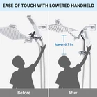HIGH-QUALITY ALL METAL DIVERTER: Made of all metal, there is no need for concern over potential breakage. This material is highly durable and less susceptible to corrosion and longer lifespan compared to plastic diverter valves. INNOVATIVELY DESIGNED OF lOW-LEVEL HANDHELD HOLDER: Compared to traditional style shower diverter with holder, this newly upgraded diverter not only makes it easier for you to adjust the mode with one reach,but the low position of the handheld mount also makes it easier for you to reach the handheld shower head and an overall more enjoyable shower.Family members of different heights and people with reduced mobility can also enjoy the shower more conveniently during adjustment. 4-SETTING MODES FOR CHOICE: Easy to use smooth control lever,you have the flexibility to switch effortlessly between the handheld and rain shower head as desired. Additionally,it allows for easy transition to pause mode, promoting water conservation while shampooing or applying body wash. To discover a renewed shower experience with the option to activate both shower heads simultaneously.When two outlets discharging water at the same time, water pressure will not be halved. STANDARD SIZE: This 3-way shower diverter has one 1/2" IPS inlet and two 1/2" NPT outlets. Universal for most shower heads, shower extension and hose connections in the US. INSTALLATION&3-YEAR AFTER-SALES SERVICE: The package comes with the tools needed for installation,saving you the hassle of the setup process and saving you time without the help of a plumber. We offer a 3-year after-sales service.If you have any questions about them,feel free to email us and we will get back to you within 24 hours.