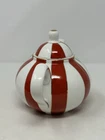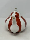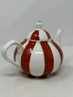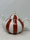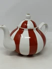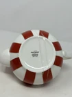 Add a touch of holiday cheer to your tea time with this beautiful GRACE TEAWARE Fine Porcelain Teapot. The porcelain is striped with a classic peppermint design in red, white, and gold, making it perfect for all occasions, especially Christmas. The teapot has a 3-inch diameter, 4.5-inch depth, and stands at 6 inches tall with a lid included. The contemporary style and glossy finish of this teapot make it a perfect addition to your dinnerware collection. It is easy to fill and dishwasher safe for easy cleaning. The teapot is personalized with a scalloped design and features handles for easy pouring. Bring home this elegant teapot today and enjoy your tea in style. beautiful to display only ONE available! please follow our store for mnay other teapots